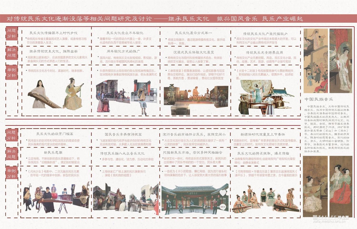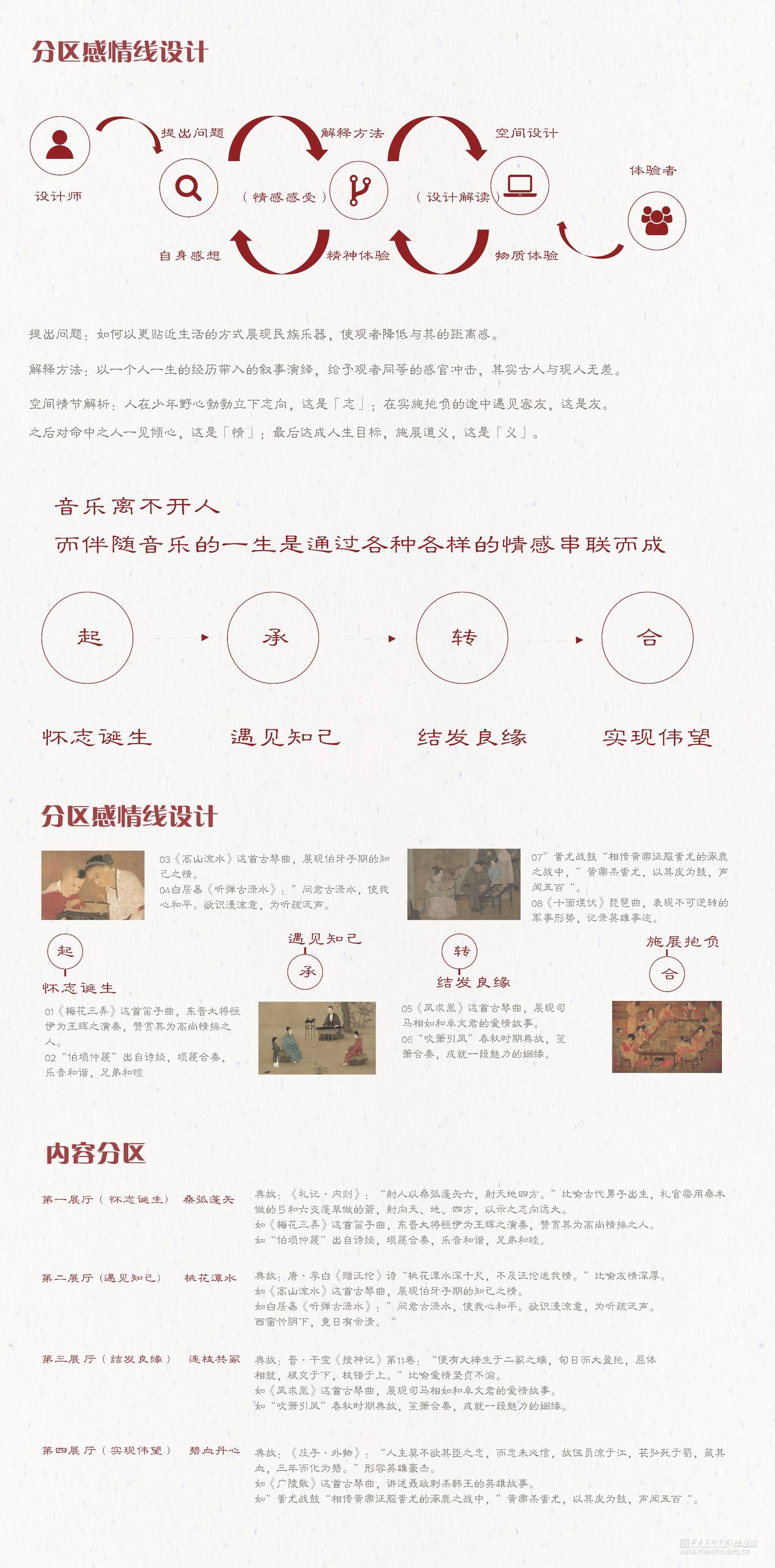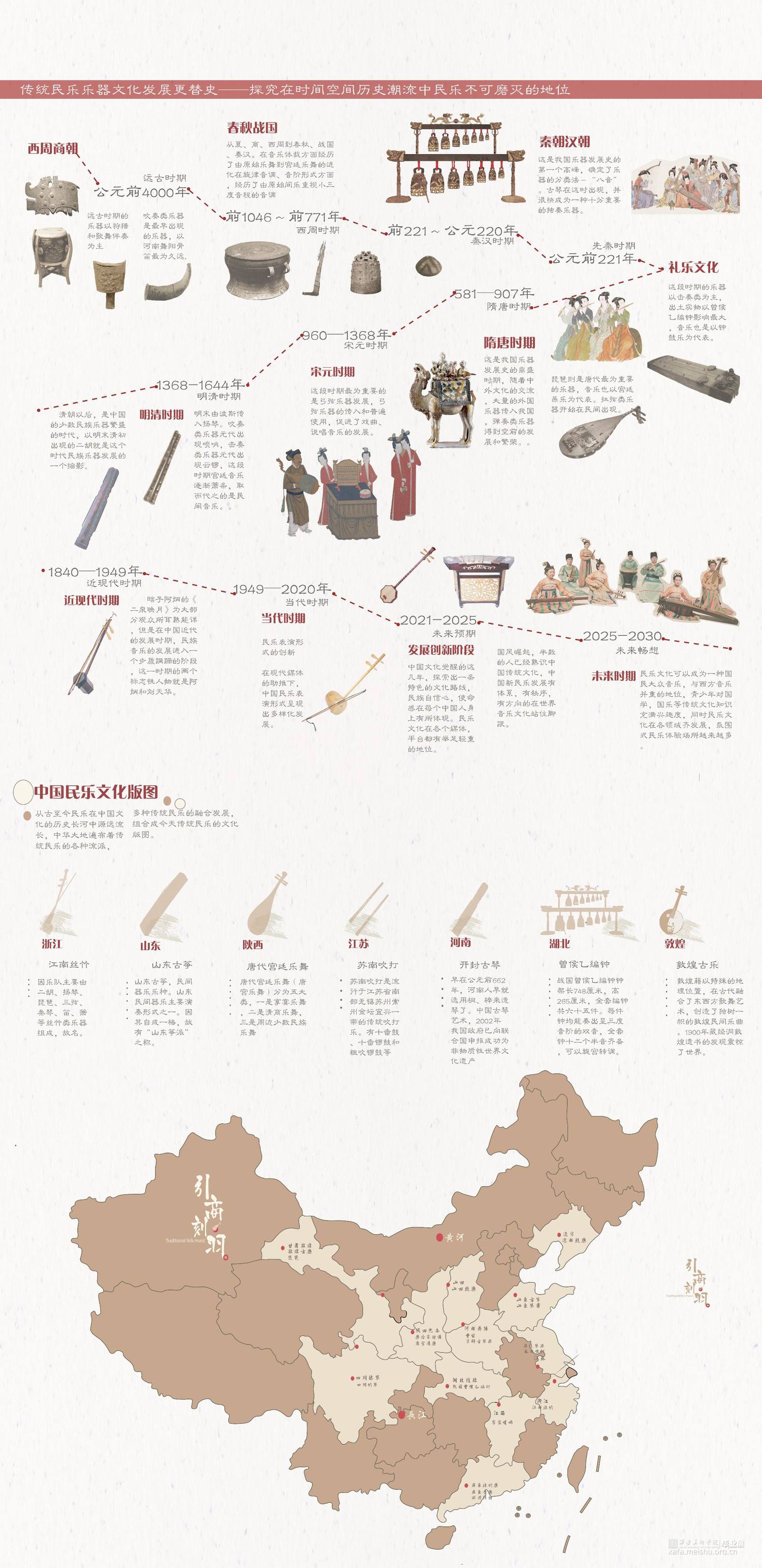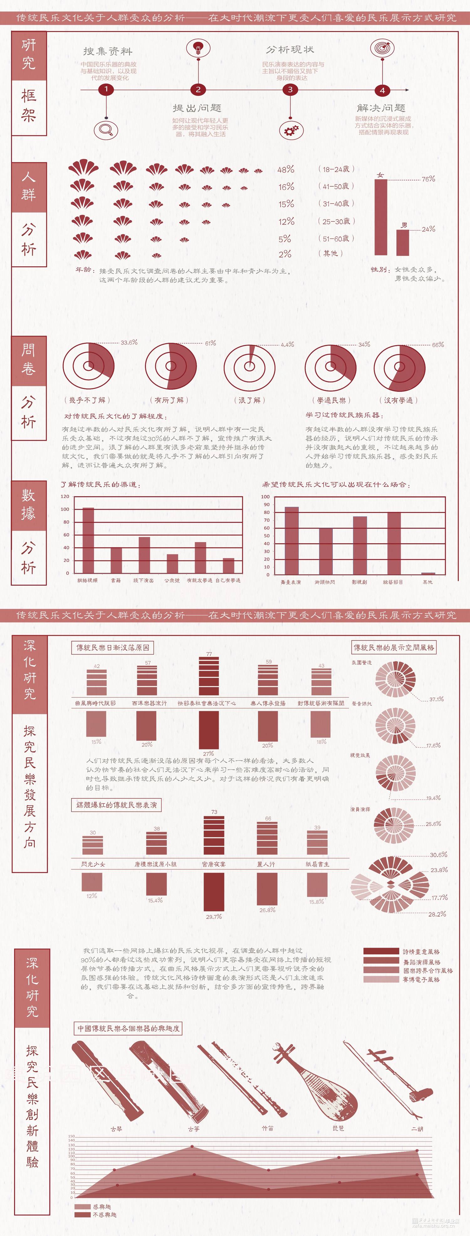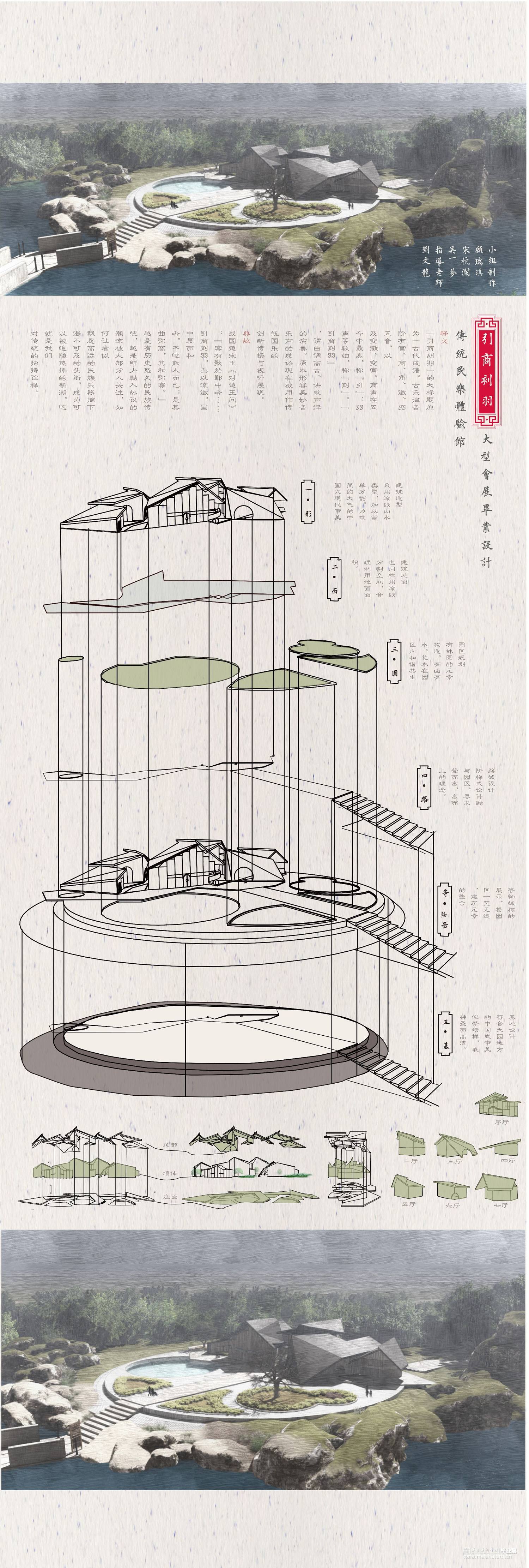 在大时代的发展下结合多媒体的传播融合,迎合大众审美,我们所做的设计在传统文化展示方向上创新再造,寻求一条有文化内涵又让大众所感兴趣的民乐展示空间。