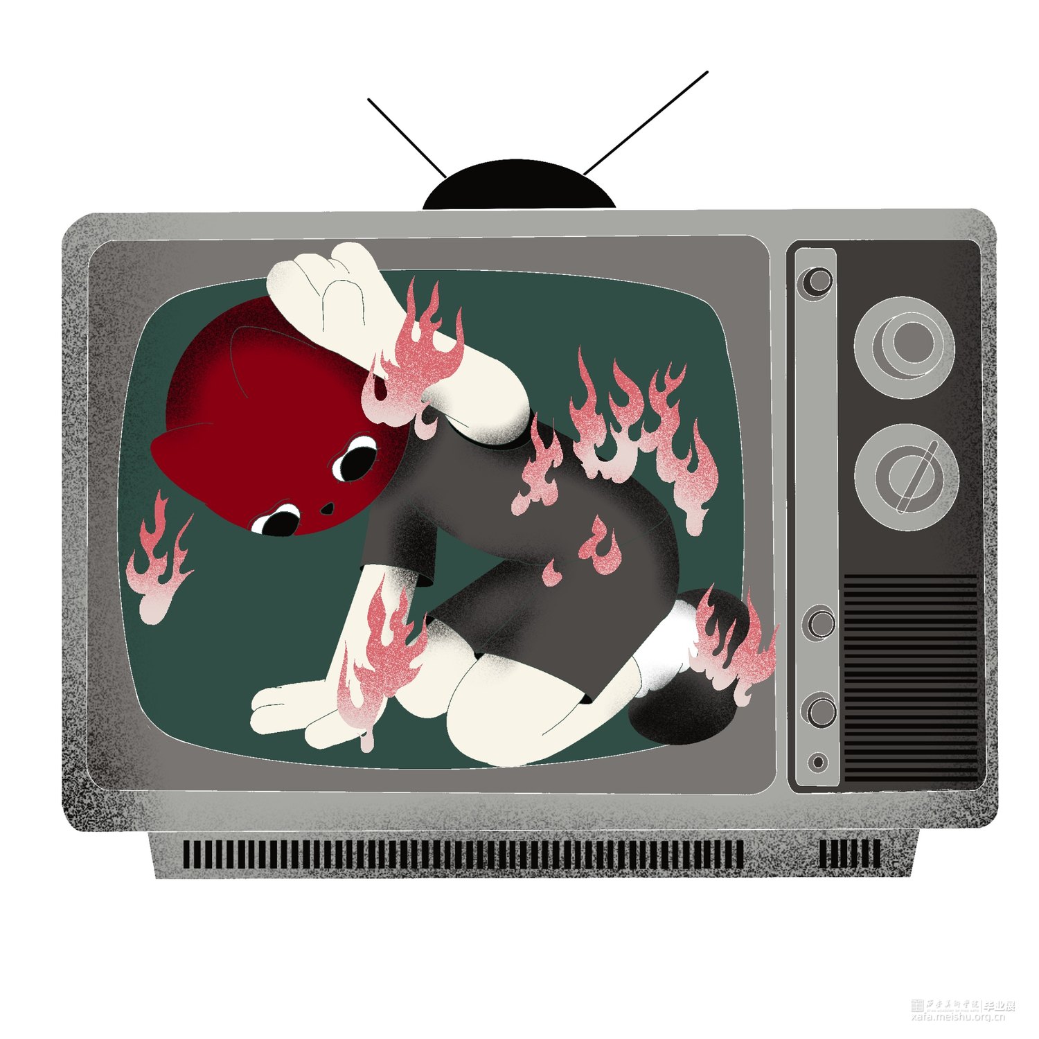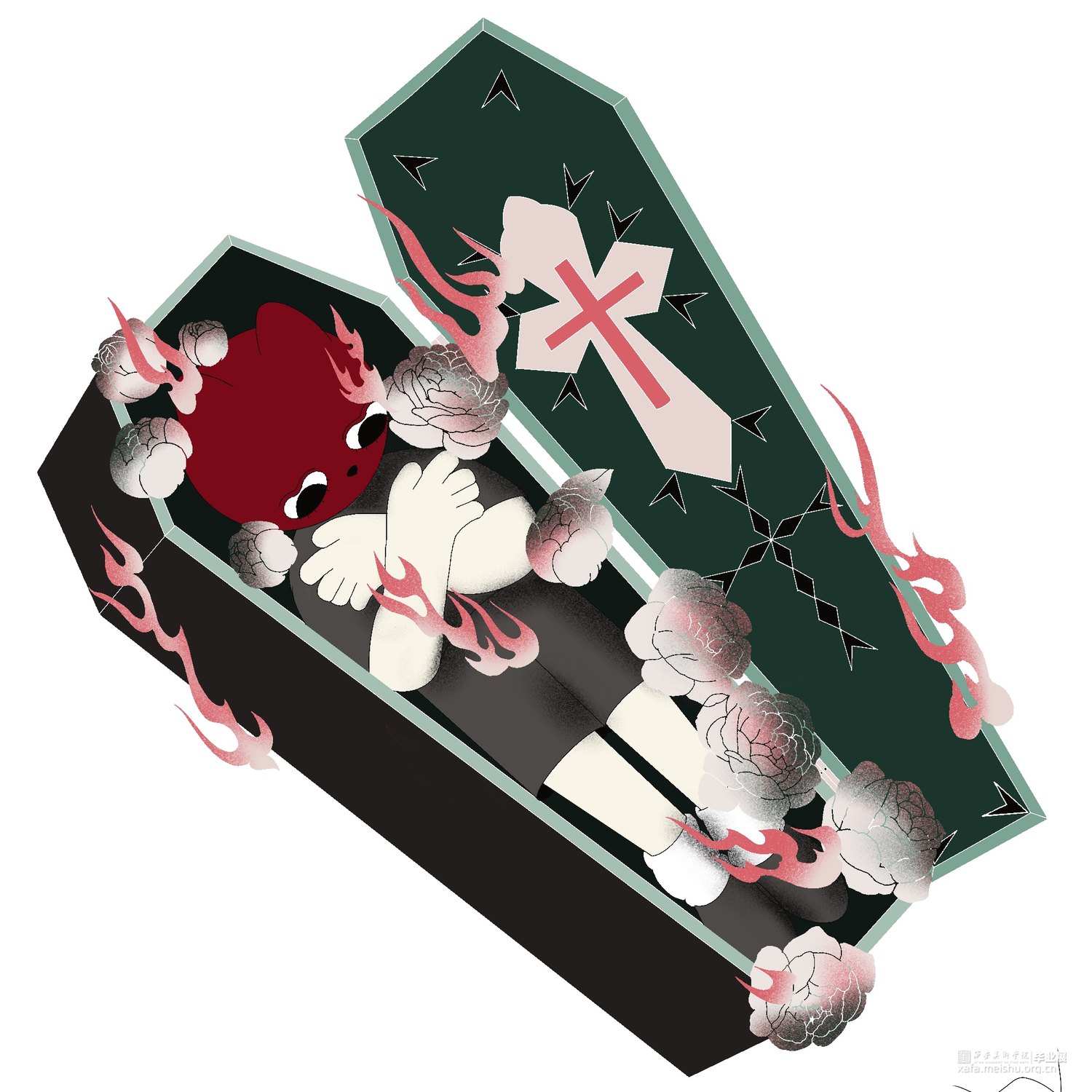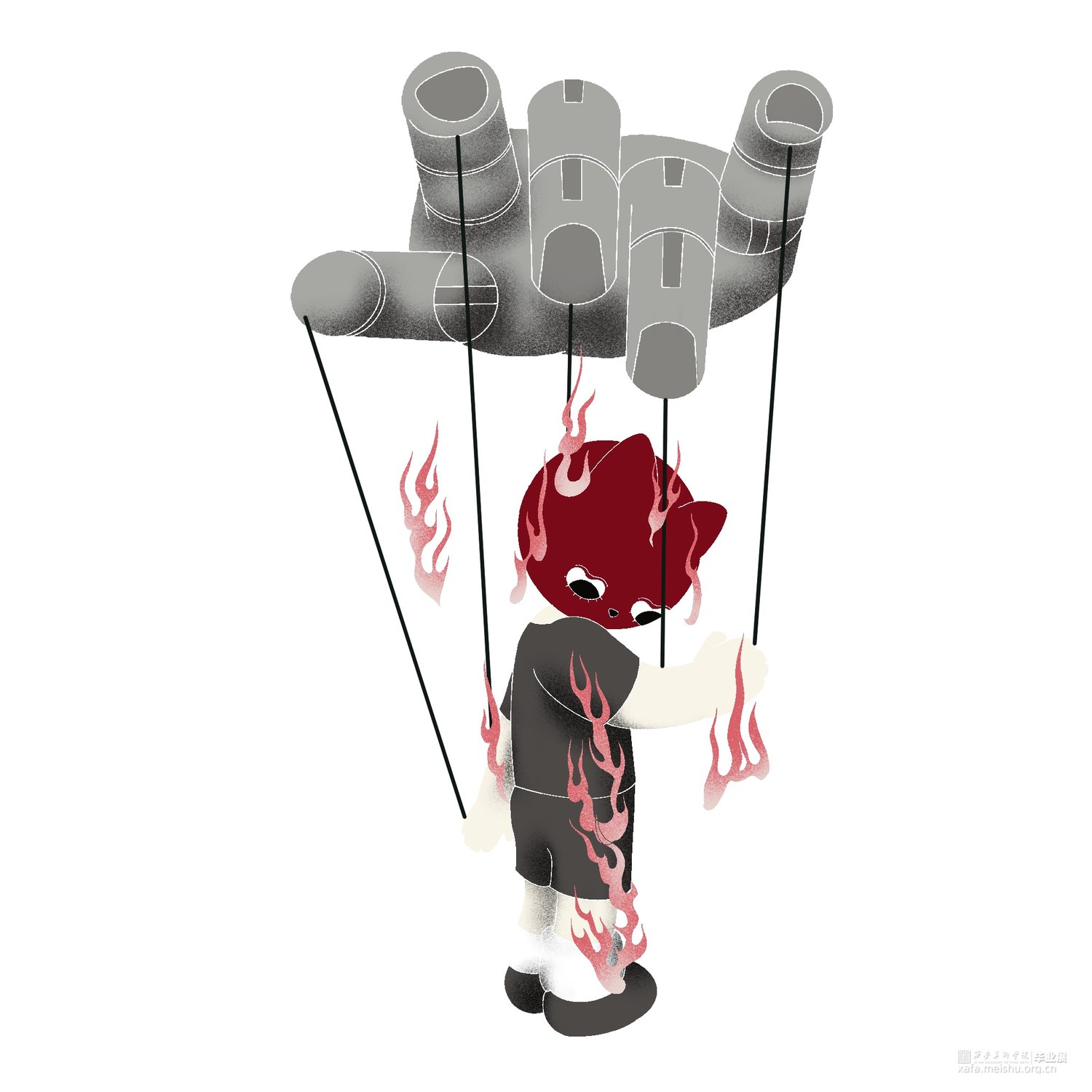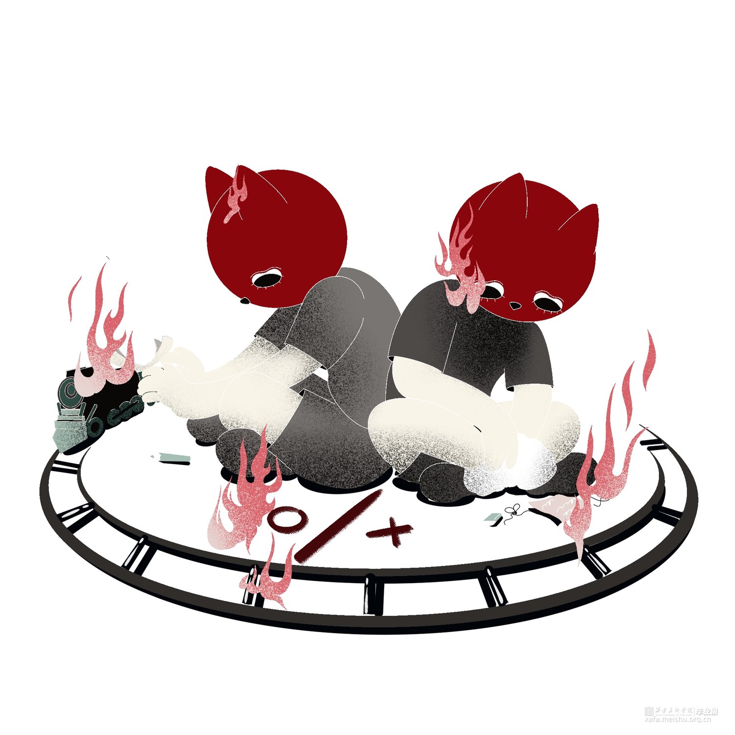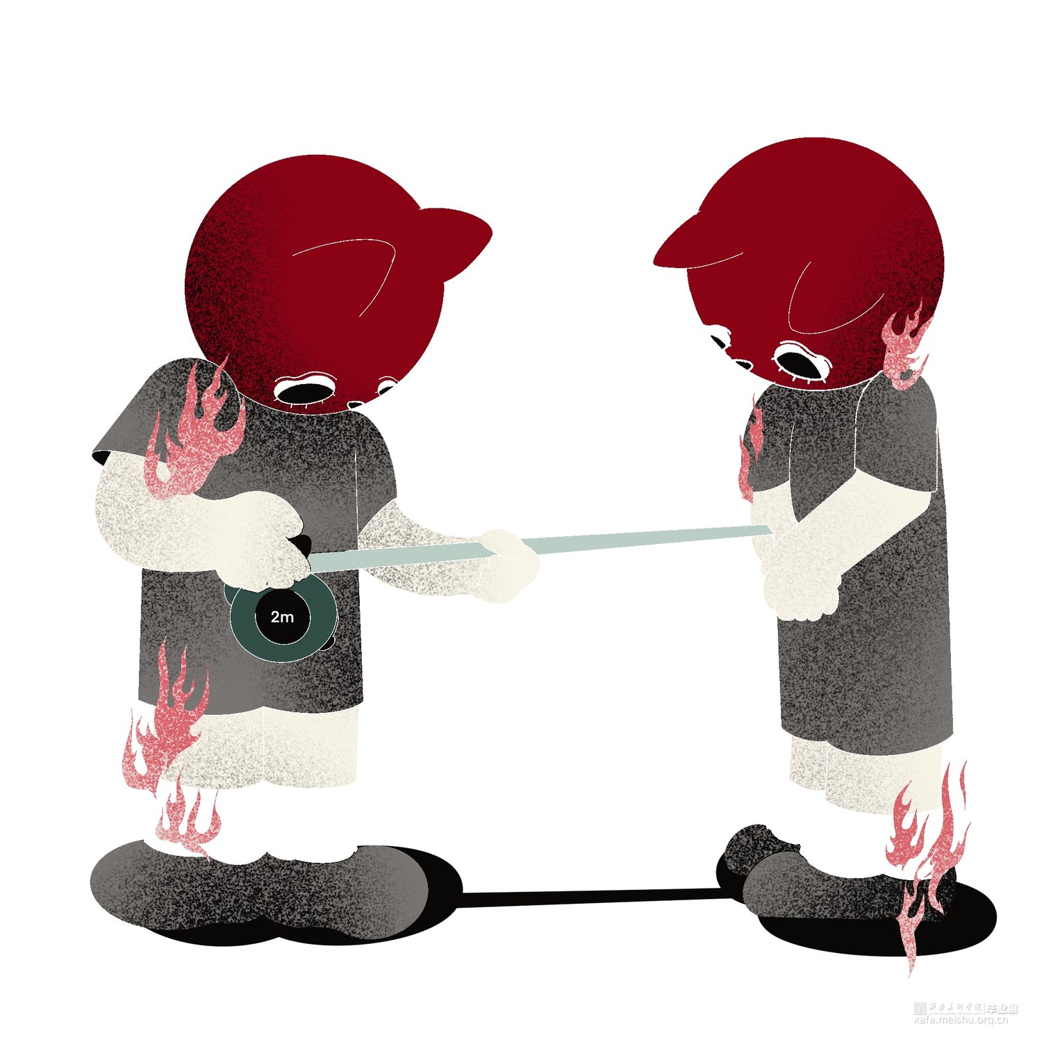 《场景插画系列》用猫的形象来表现出人们的各种社恐瞬间。