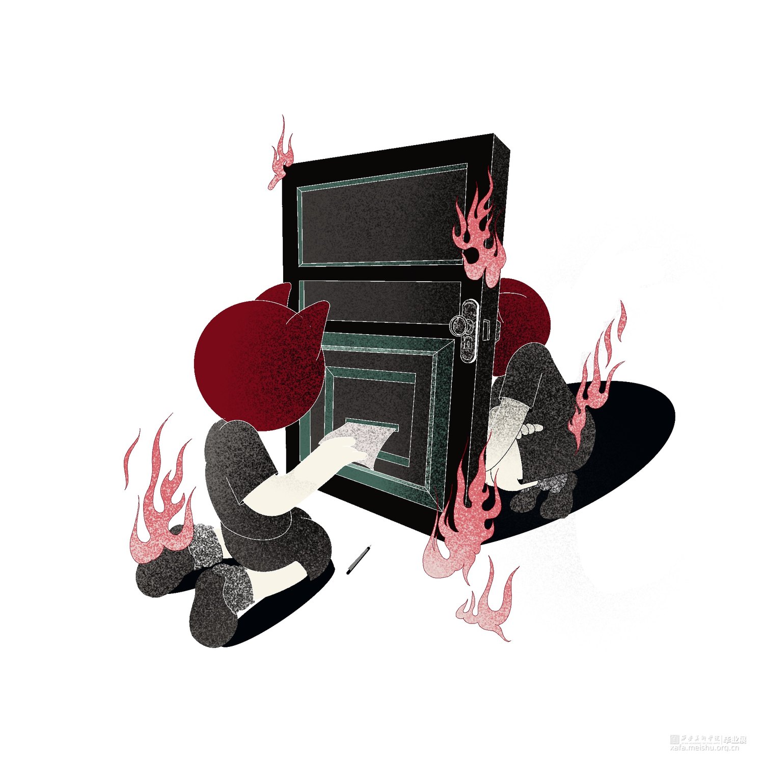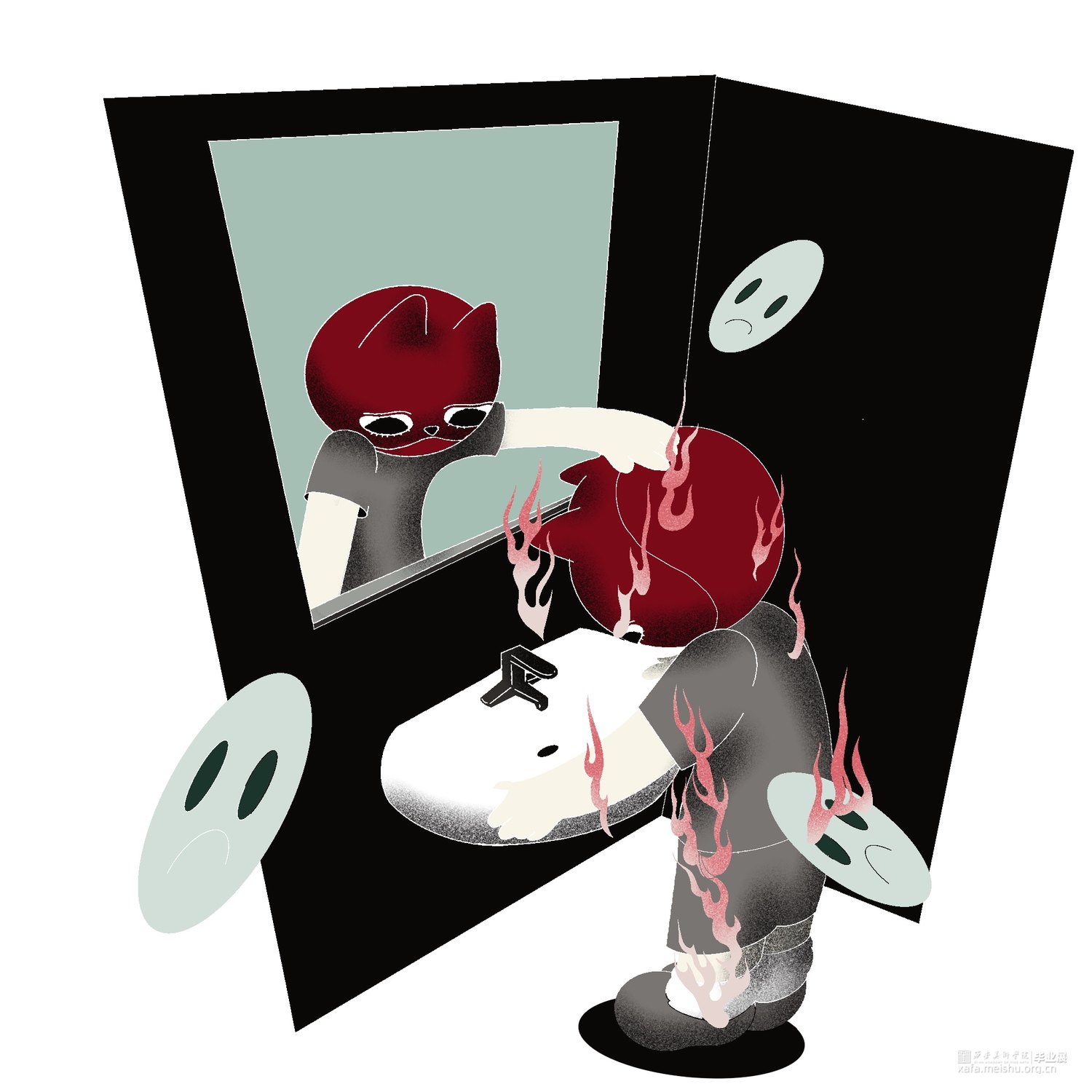 《内心转化系列》分为三小幅:《自我封闭》《尝试接受》《拥抱他人》,希望社恐人群能够敞开自己的内心,拥抱他人。