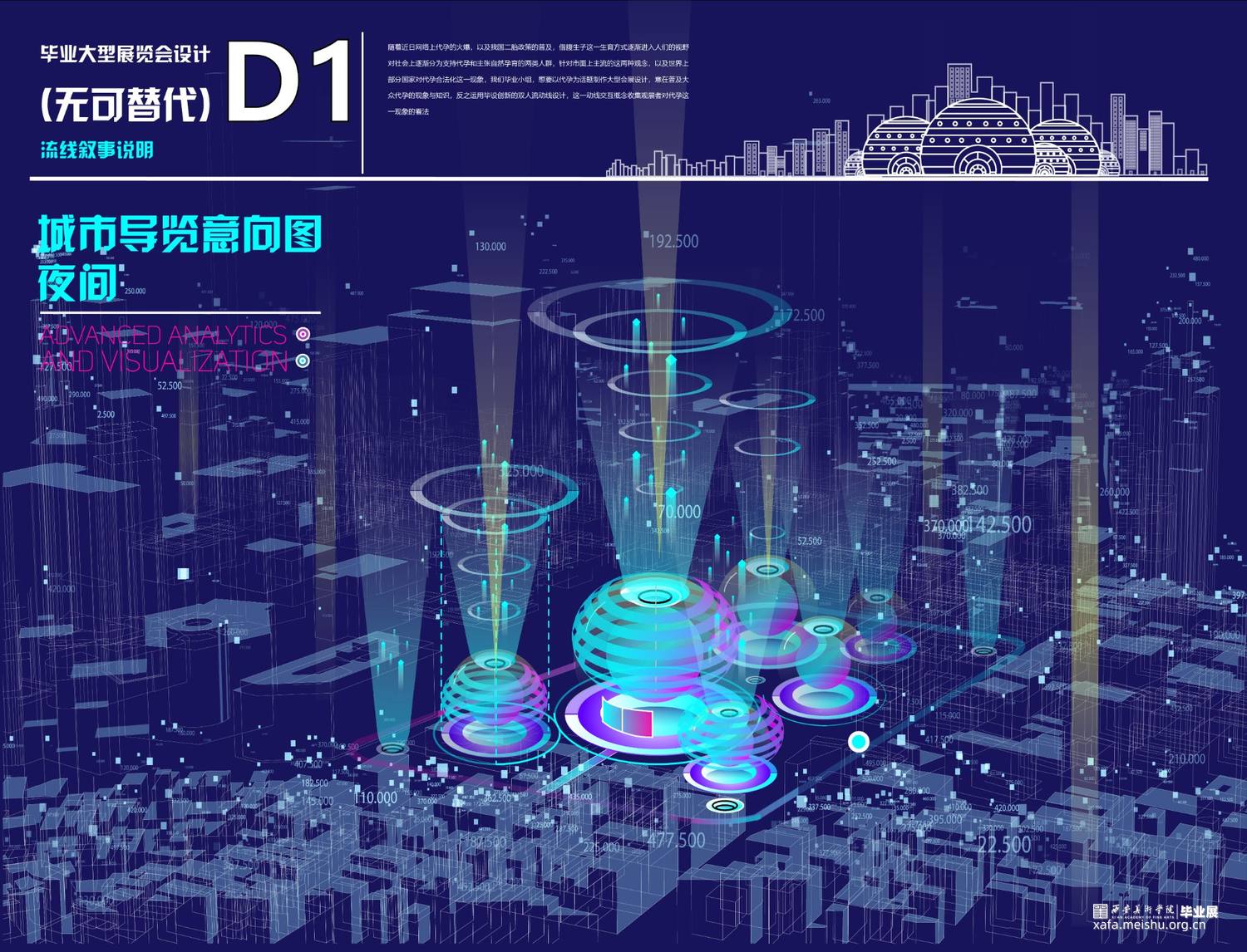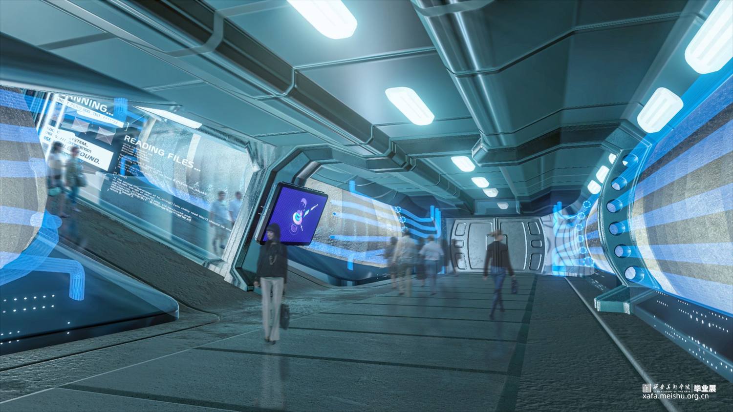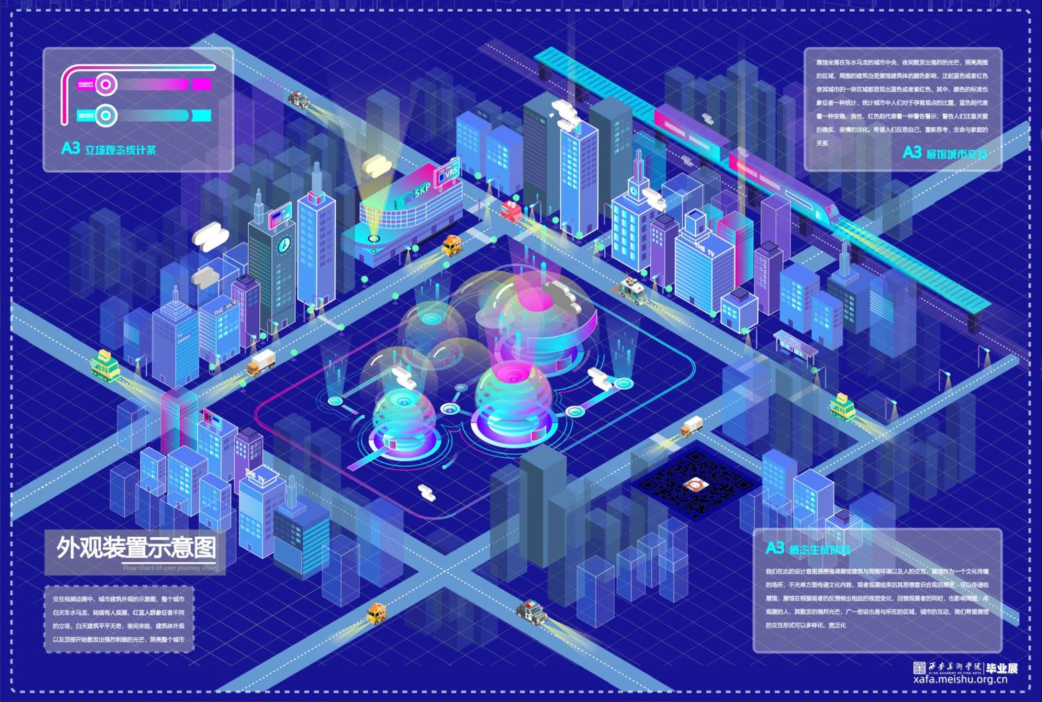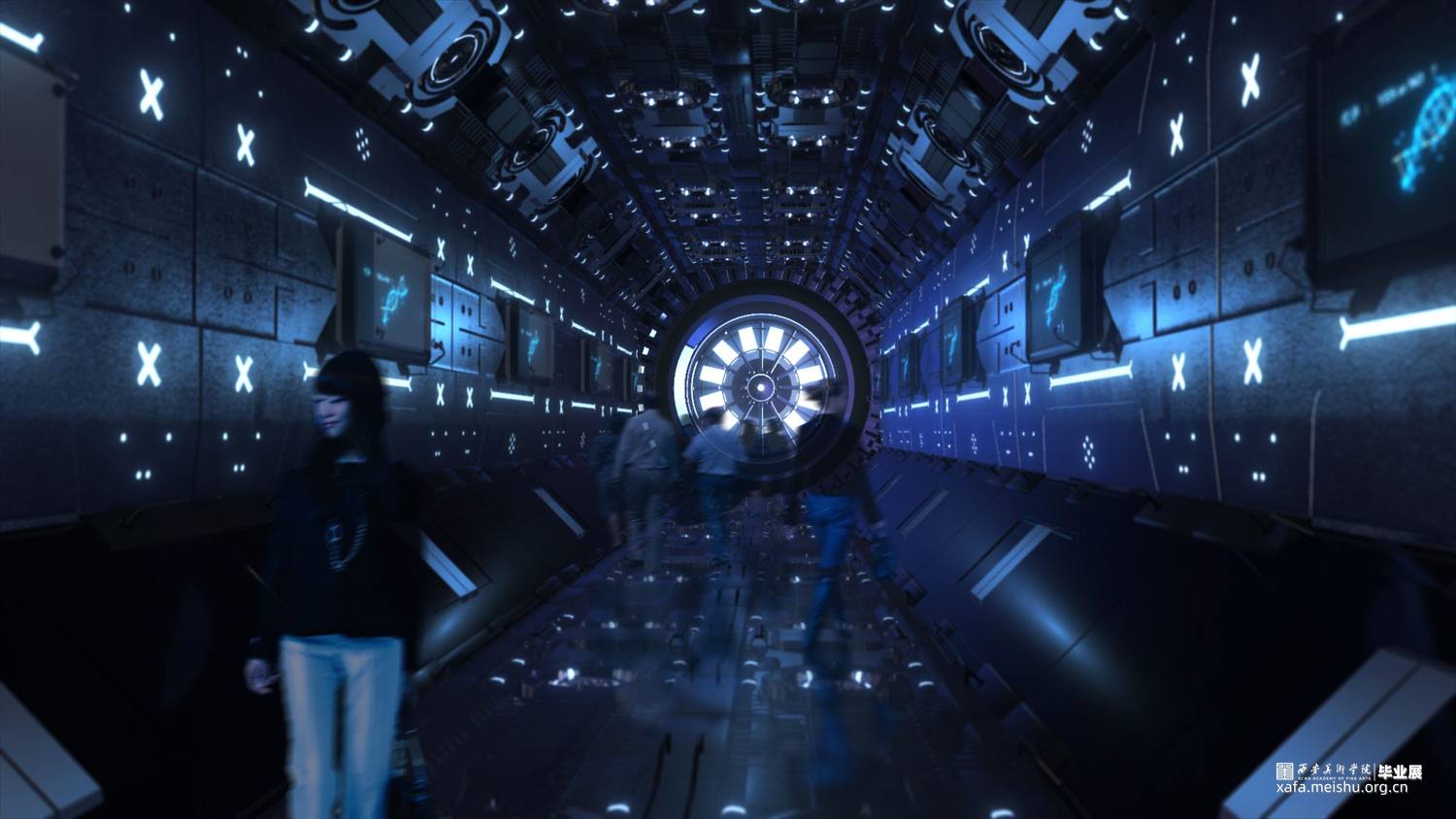 以往的传统展示空间,信息只是单一的传递,展馆作为文化场所,传递信息,人们作为接受者,了解信息。此次设计的展馆空间,除了在人流动线以及抉择之环的交互外,也希望展馆可以接收大众信息的反馈,提出“人与建筑的交互“,“建筑与周围人群、周围环境的交互”,即展馆通过收集参观者的人流动线路径,以及人们最后的数据投票来做统计,若选择借腹生子的观者较多,则夜间建筑外观散发红色的光芒,代表着对城市的预警,对城市的警示,若选择自然孕育的人数较多,则夜间散发蓝色的光芒,代表一种健康和谐的状态,这样建筑外观就像一种预报统计器一般,告知城市参观人群的想法乃至整个城市人们的想法。