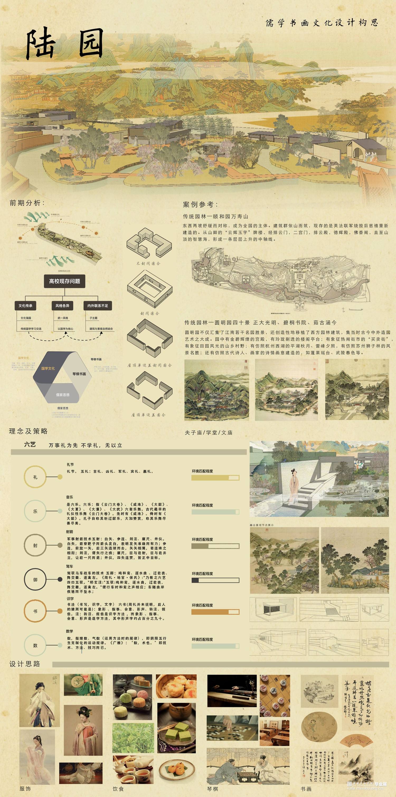 巍巍学府,德渥群芳。无论从社会需求和生态价值,或是文化传承,都应与当代高等学院环境风格相结合,对国学文化进行诗意化的提炼。焕发更多精彩。