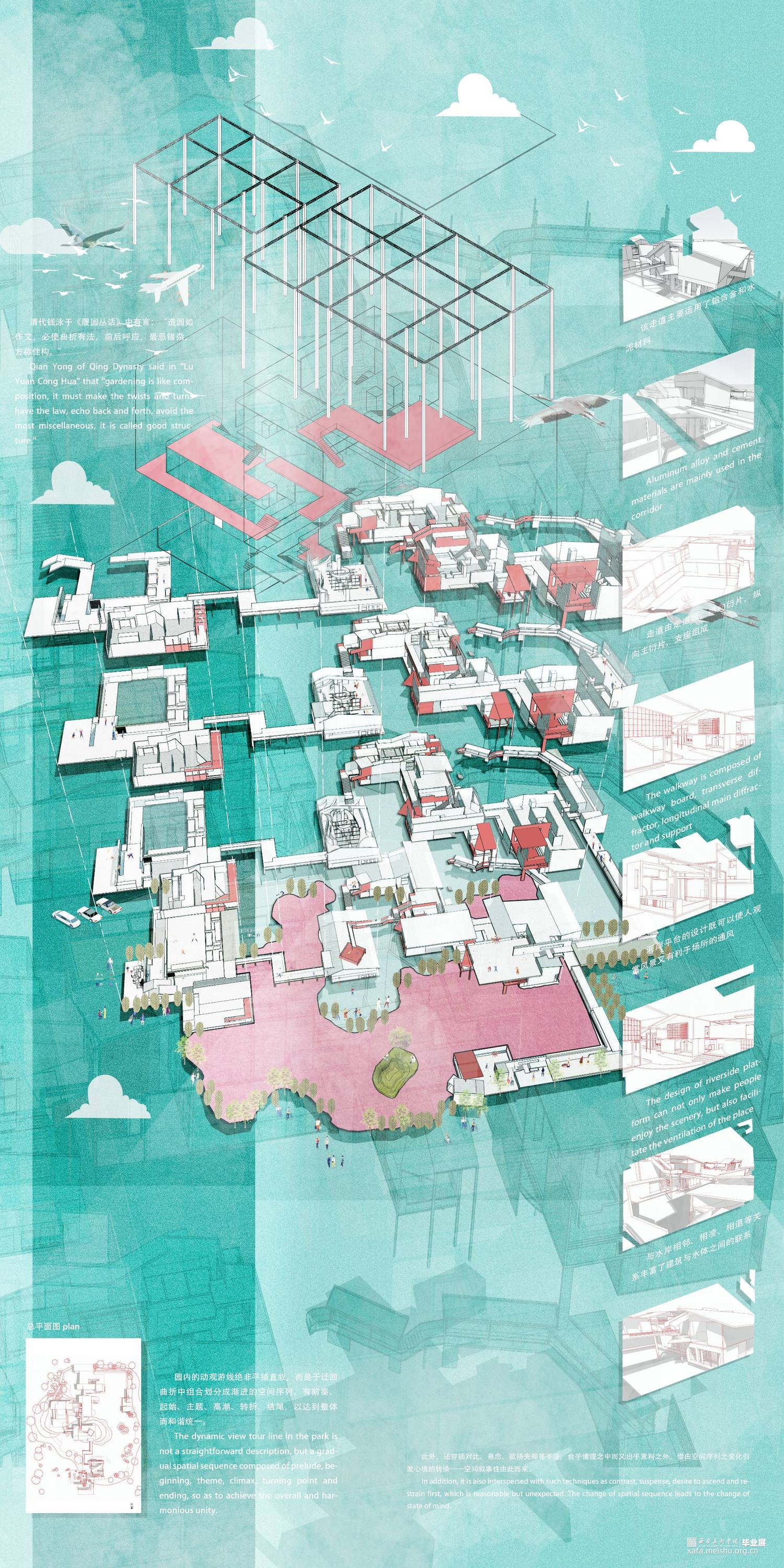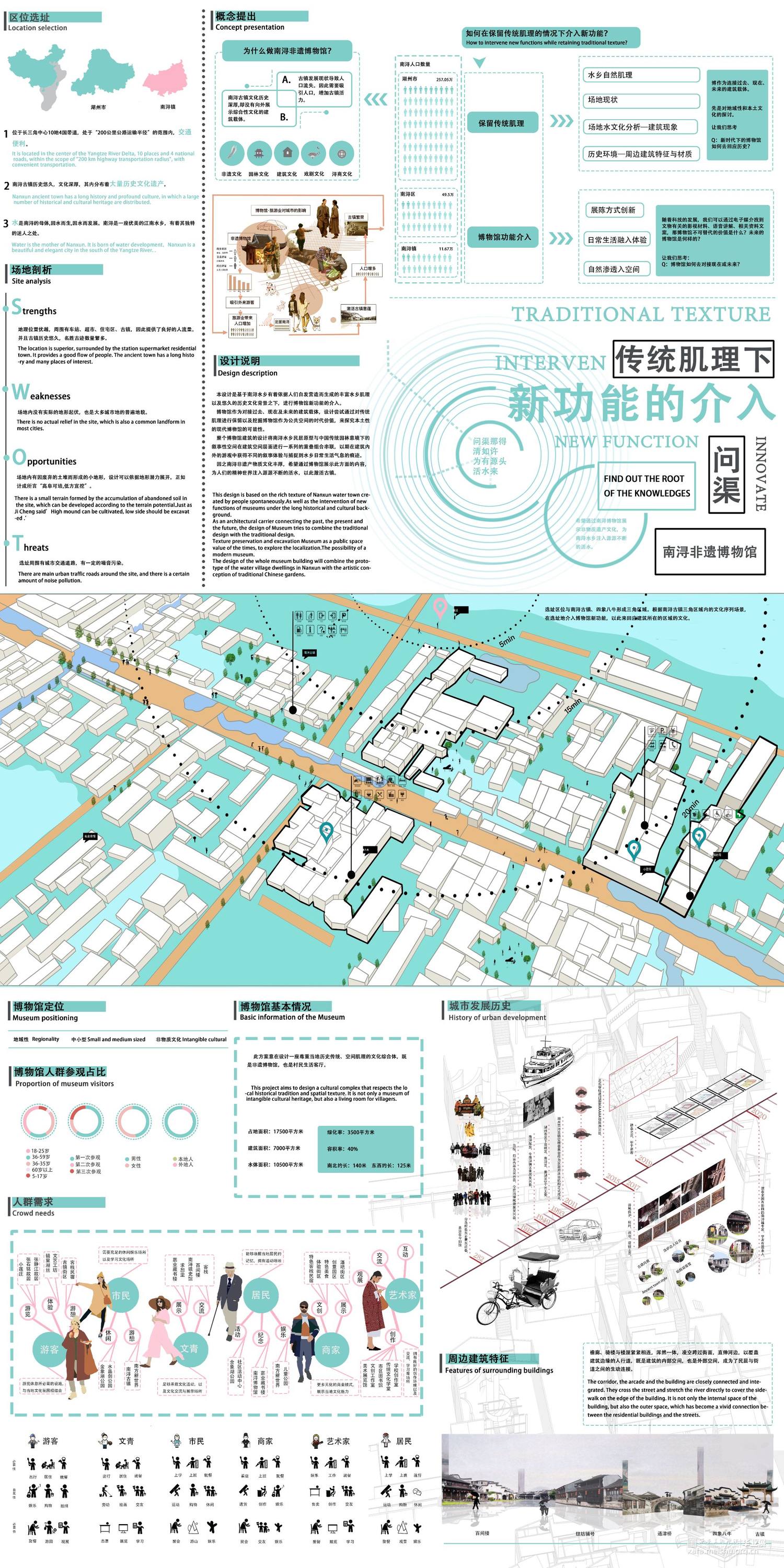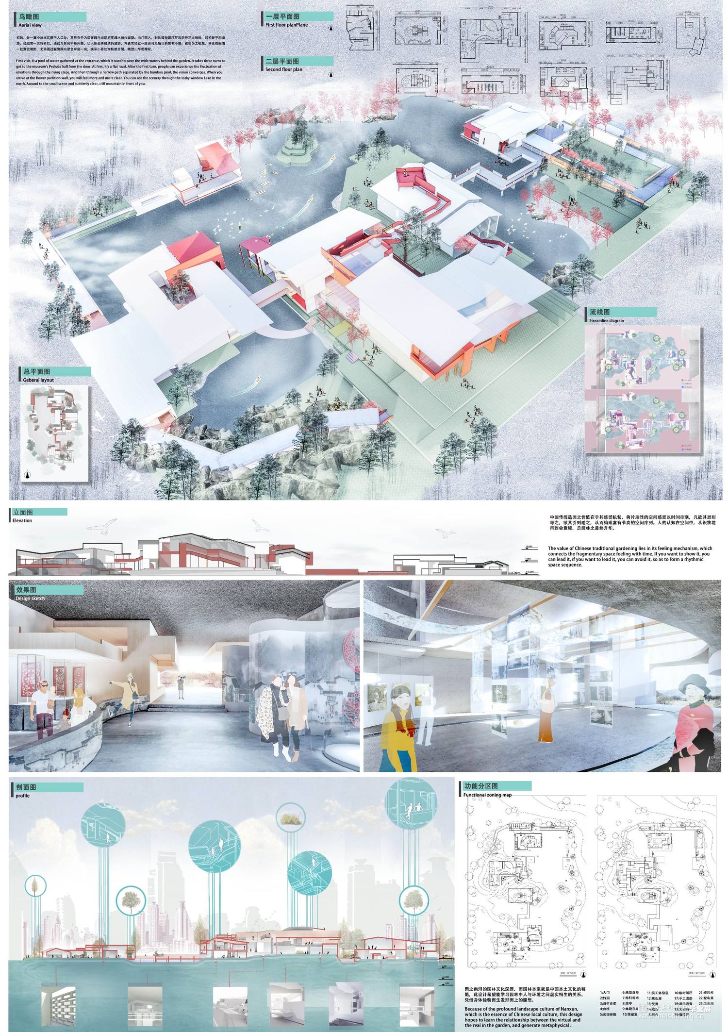 本设计尝试将惯常博物馆的机构性和纪念性,分解为一个与老城肌理同构的立体观展游历,让现代城市的日常性与非遗艺术之间间产生强烈的时空拼贴。在地域性的基础上,融入中国古典园林的意境与身体感受,营造复杂而又和谐的叙事性空间。