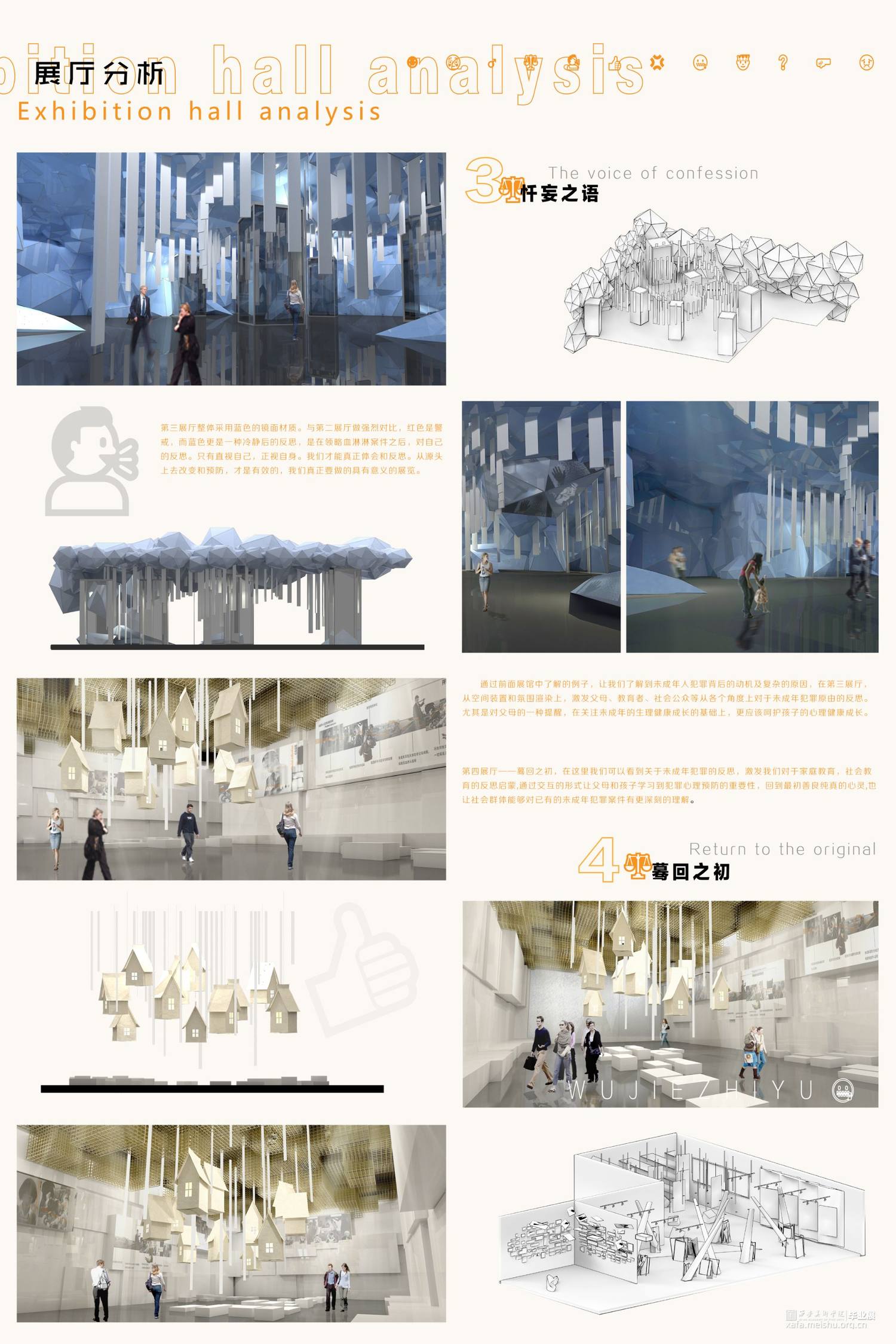 深层含义:一指犯罪年龄的“无界”,不论是成年人犯罪还是未成年人犯罪,都应同样引起重视,在犯罪这条道路上没有年龄的分界;二指会展空间的“无界”,因为会展的主题偏教育性,侧重人群是未成年人,因此对于会展的选址没有固定,采用临展的形式,在各个初高中附近搭建展览;三指会展的受众没有界限的区分,每个家庭都会有新的未成年,每个未成年的成长都值得家庭去注重呵护......