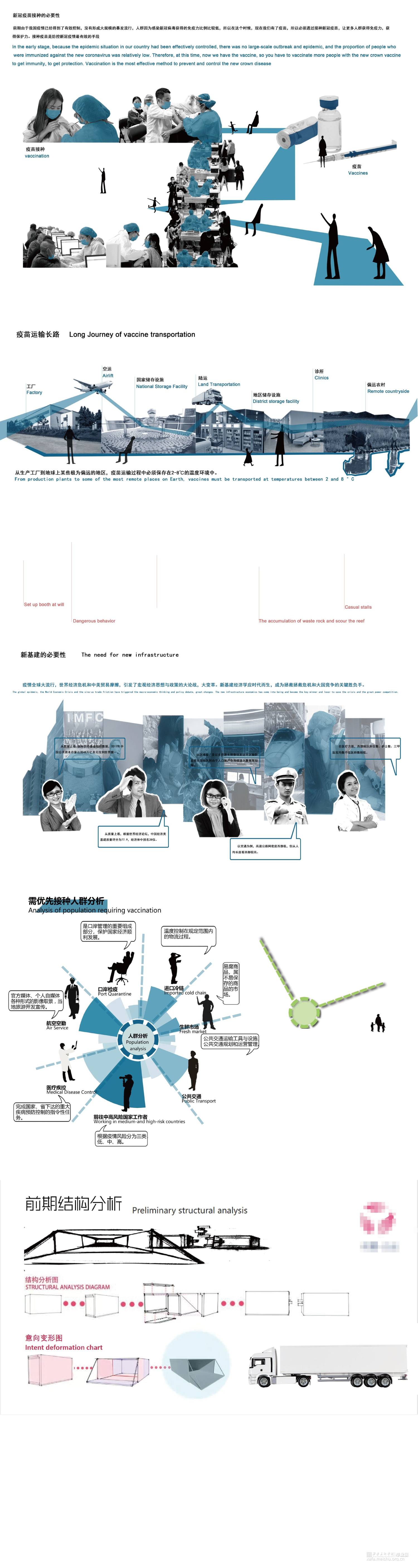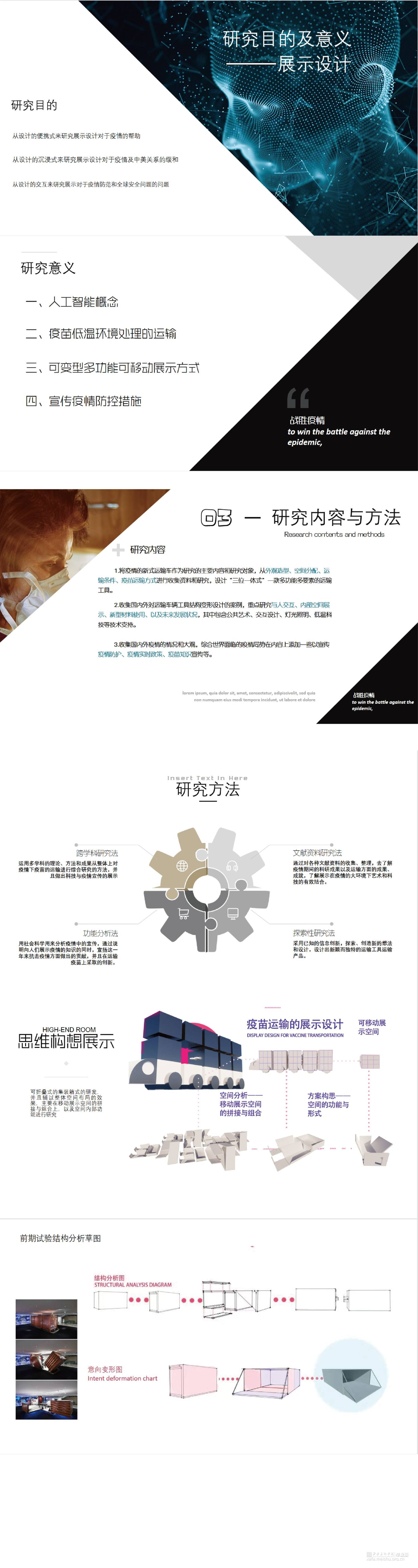 1.将疫情的新式运输车作为研究的主要内容和研究对象,从外观造型、空间分配、运输条件、疫苗运输方式进行收集资料和研究,设计“三位一体式”一款多功能多要素的运输工具。