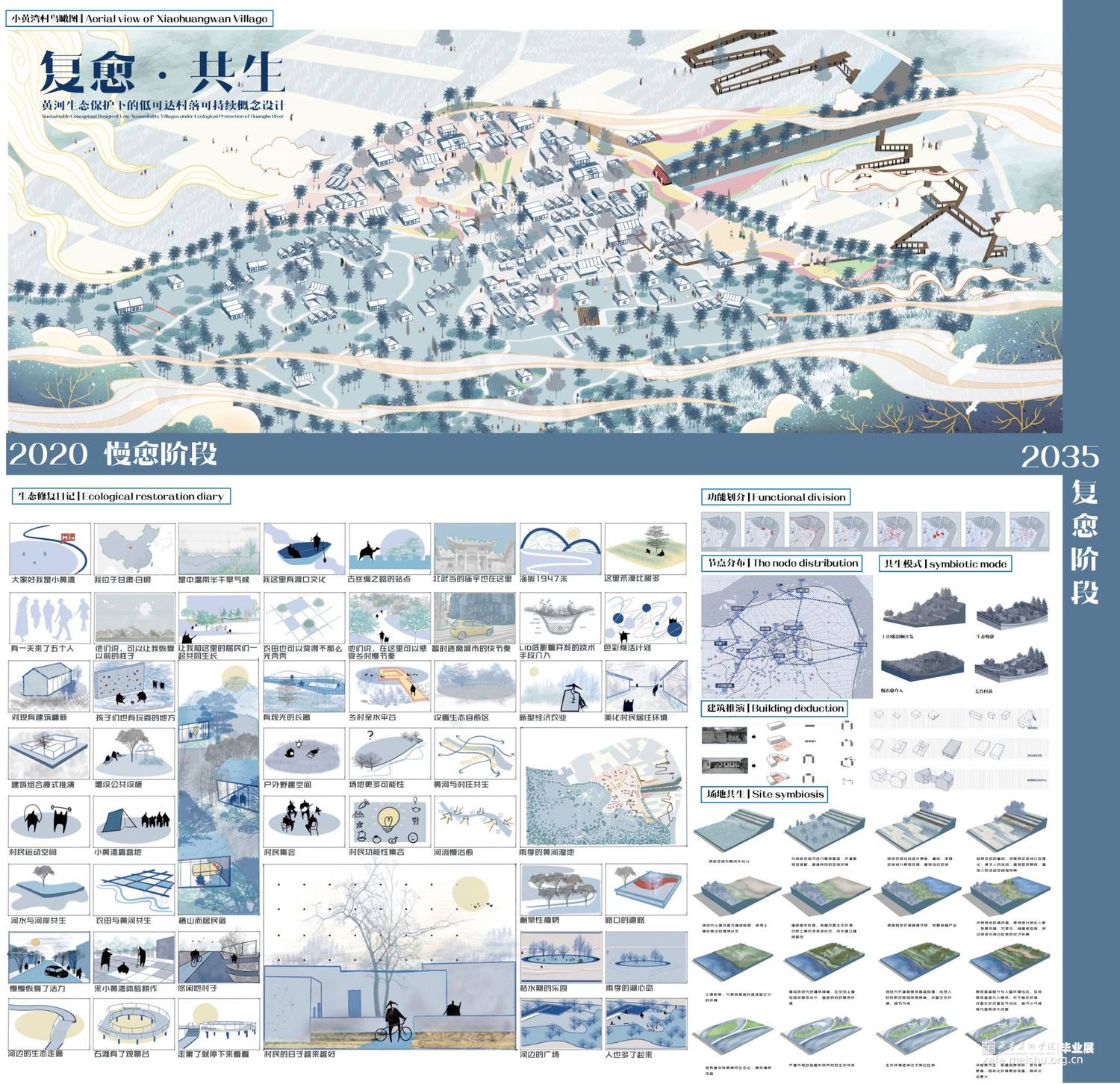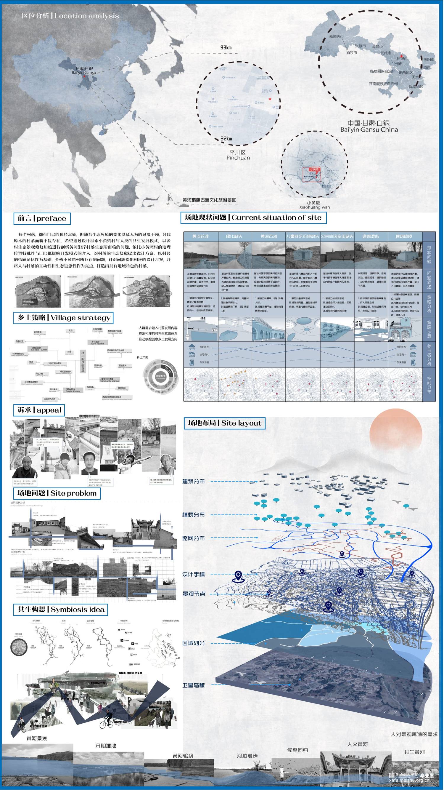 每个村落,都有自己的独特之处,但随着生态环境的变化以及人为的过度干预,导致原本的村落面貌不复存在。我们设计落地为甘肃省白银市黄河沿线的小黄湾村,本案希望通过主动干预生态环境,让其自我修复,来缓和黄河上游自然生态与人文生态问题,希望通过设计探索小黄湾村与人类的共生发展模式。以乡村生态景观修复角度进行剖析黄河沿岸村落生态所面临的问题,依托小黄湾村的地理位置特殊性与LID低影响开发模式的介入,对村落的生态复愈提出设计方案。以村民的情感记忆作为基础,分析小黄湾村所存在的问题,针对问题提出相应的设计方案,并将人与村落的互动性和生态复愈性作为亮点,打造出具有地域特色的村落。