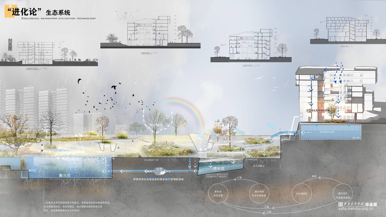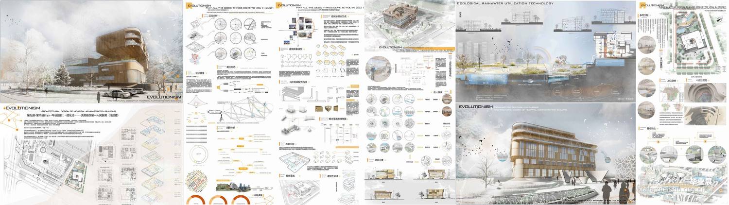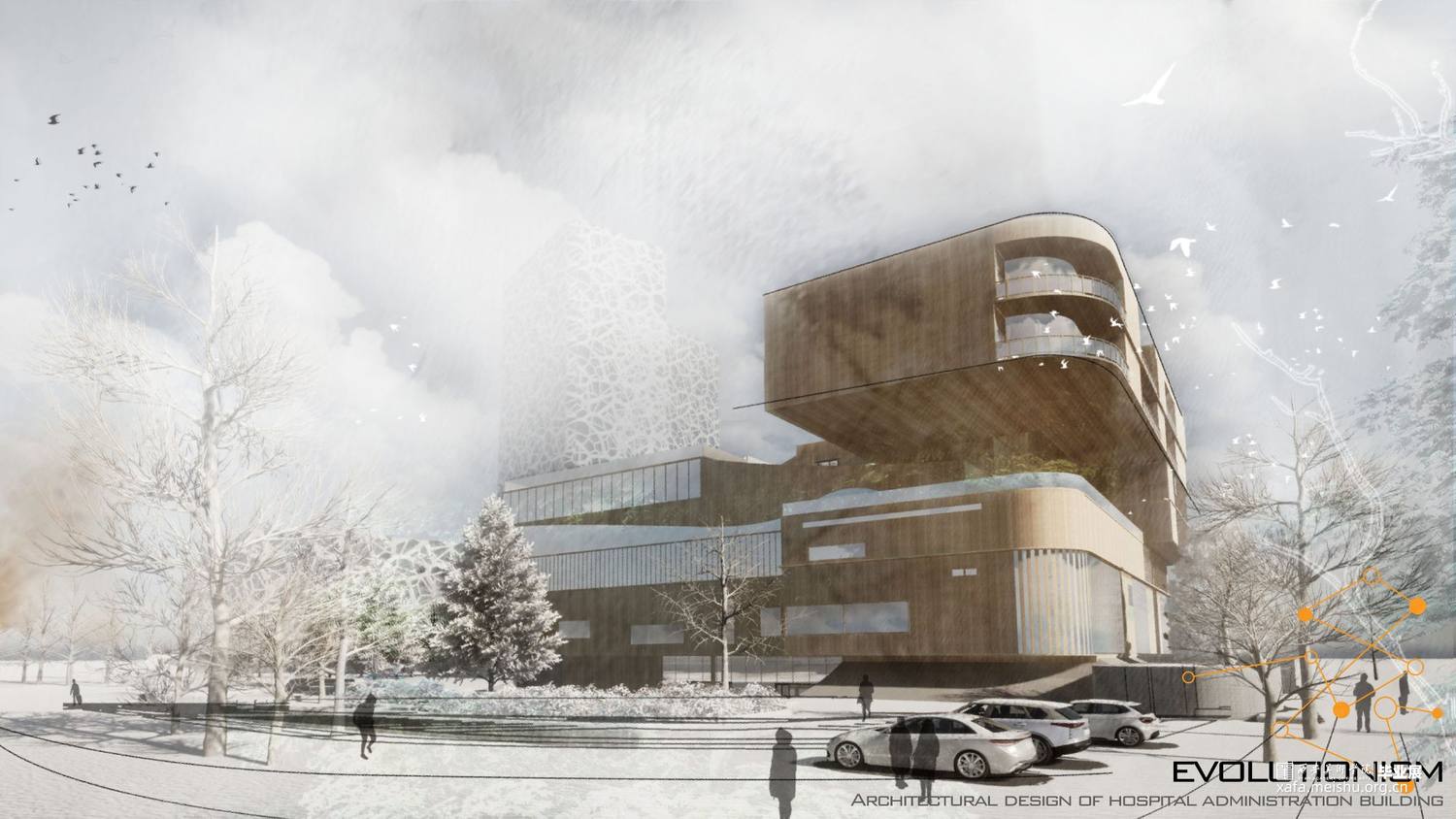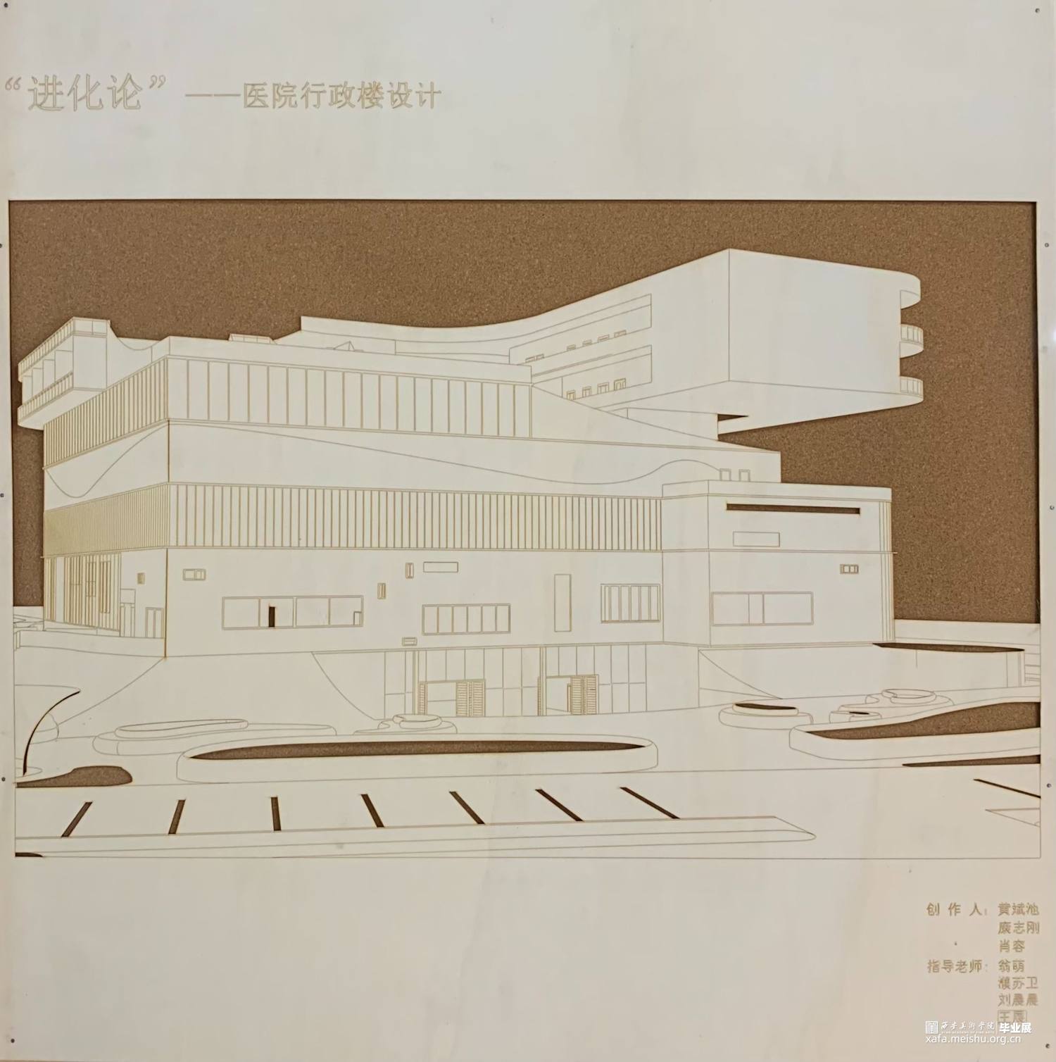 进化论”与达尔文的进化论同名但又有所不同。我们的进化论探讨的是大自然生物之间,自然与人自然与建筑和谐共生的一面,进化论探讨的是一是面对当下,一方面对未来,医生—人,生命体之间有机无机之间形态进化。及这栋建筑所发挥的作用在不同时期是否可进行内部空间概念上的转换与改变,及随时代的发展不断的进化,去解决当下人们会面对的新的供需要求。