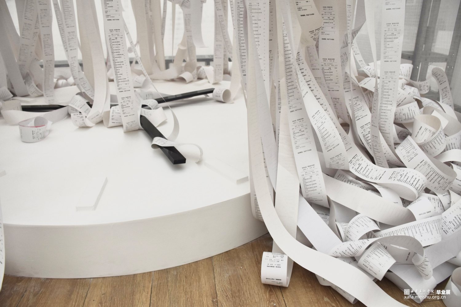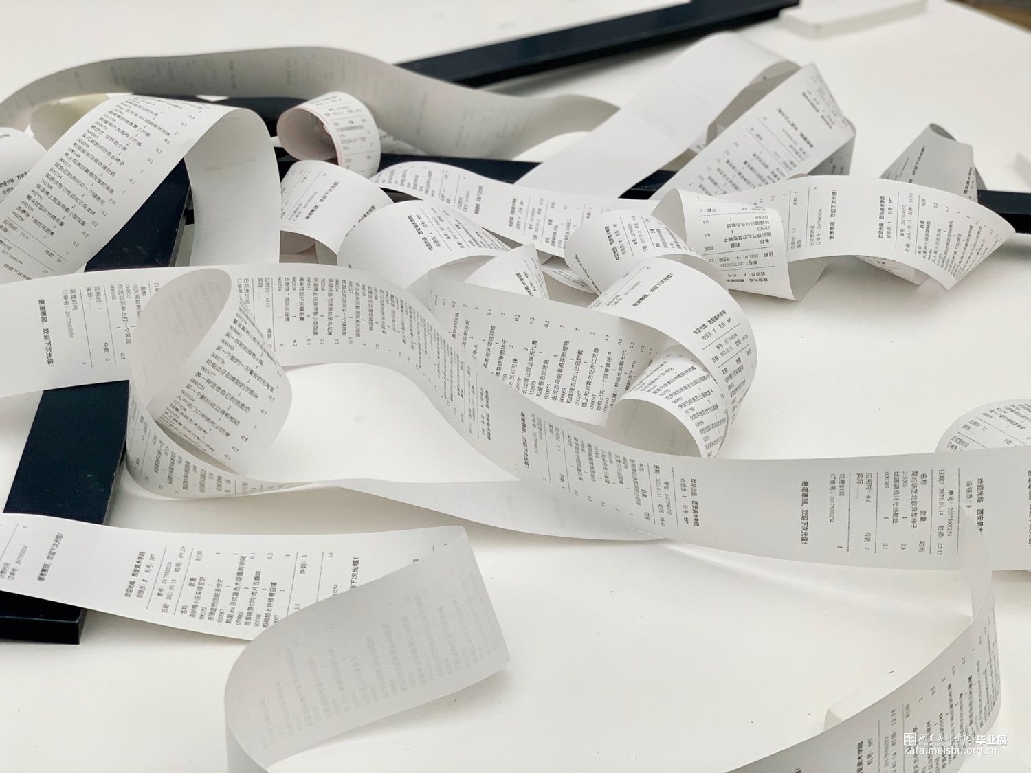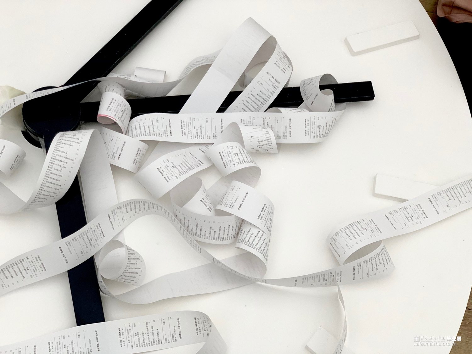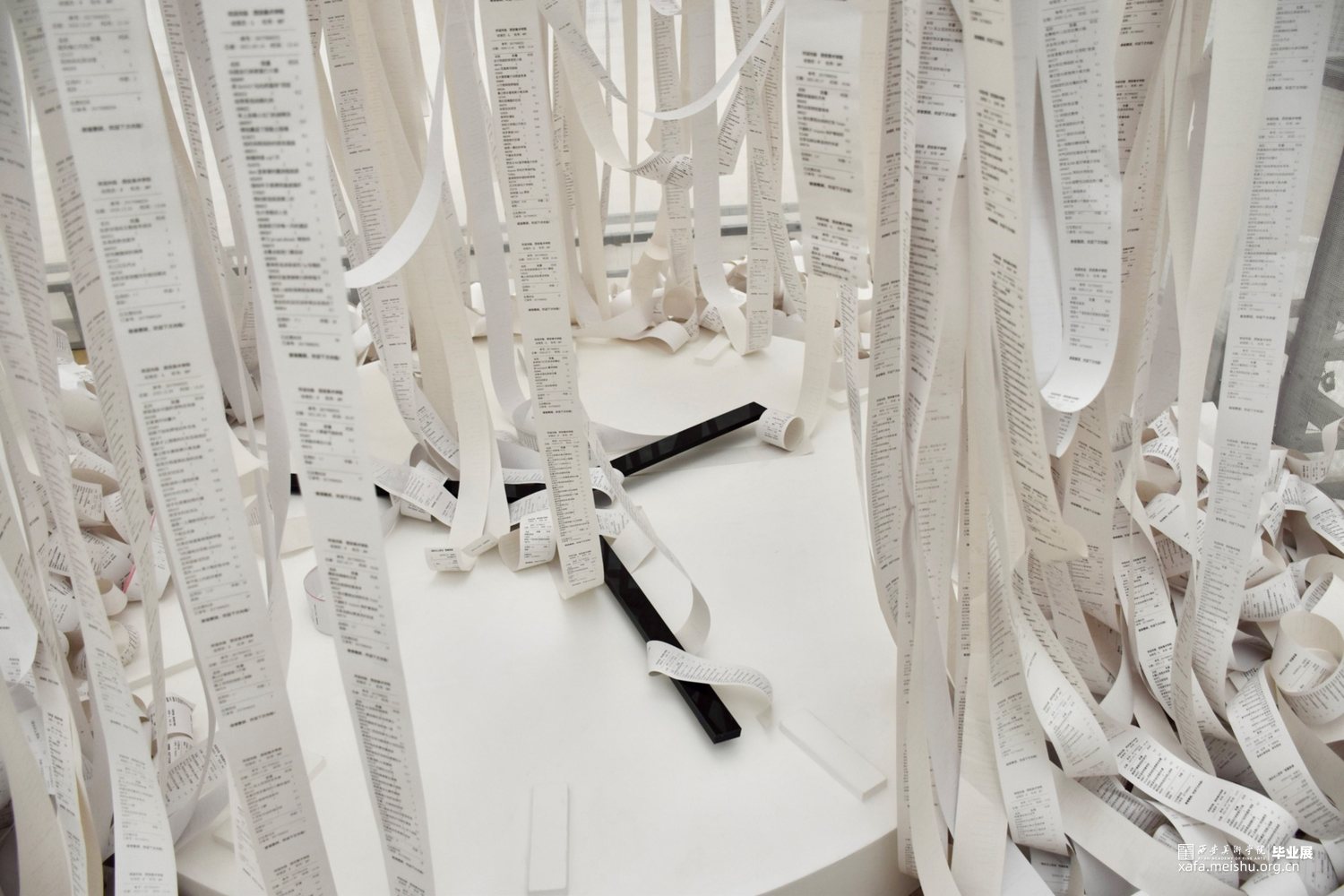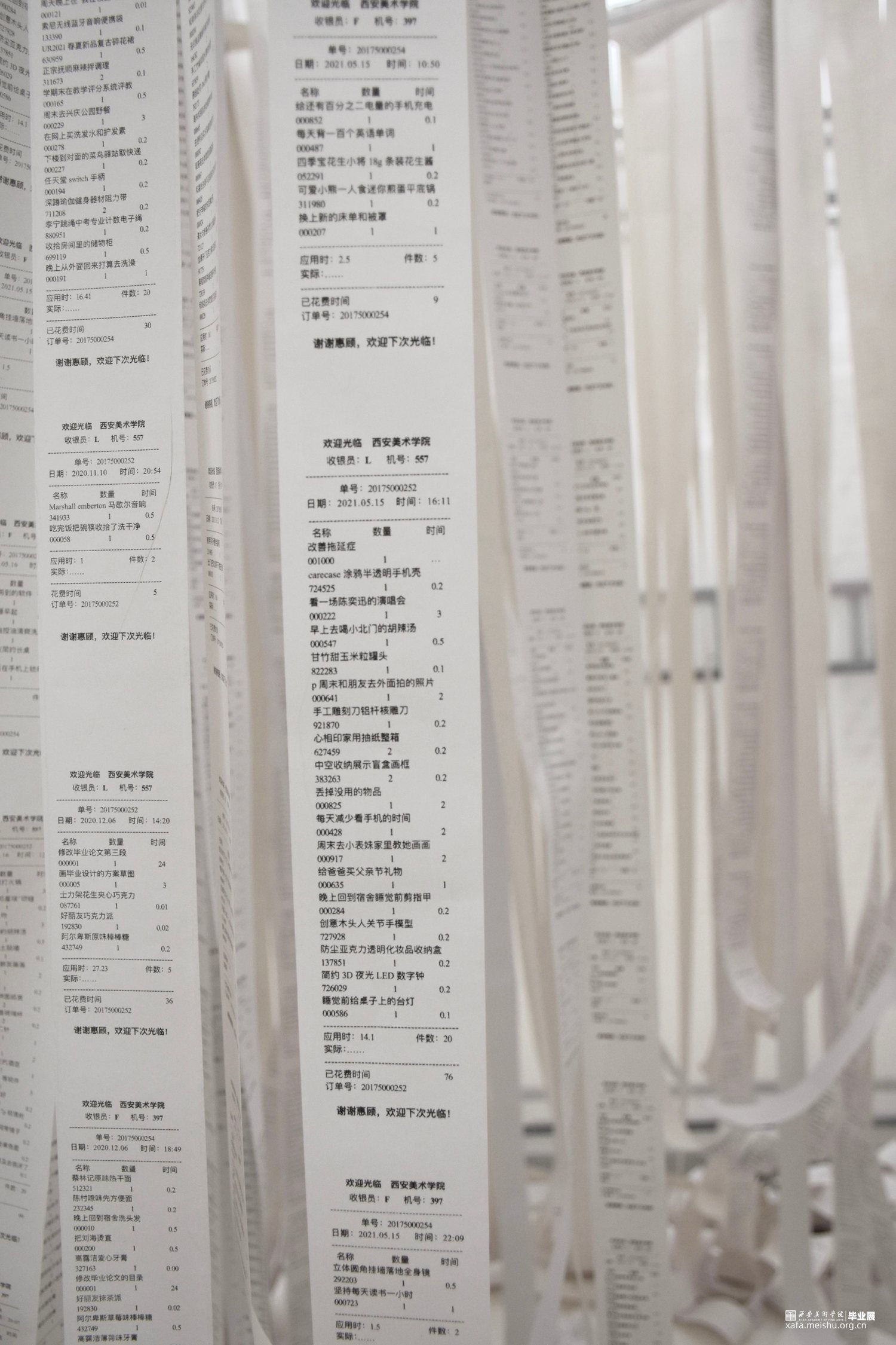 期限性拖延,几乎普遍存在于大多数人群中,在学习和工作中几乎每一天都伴随着期限性任务。热敏纸束缚着指针就像没有完成的任务拖着我们向前进的步伐一样。被拖延的事情已经多到时间都承受不住,无数的事情被缠绕住,拖延到了最后将一无所获。作品主要表达当代社会中存在的在时间和该完成的事项之间的一个矛盾的状态,关注问题的本身及希望唤起观者对于所存在问题的自我反思。