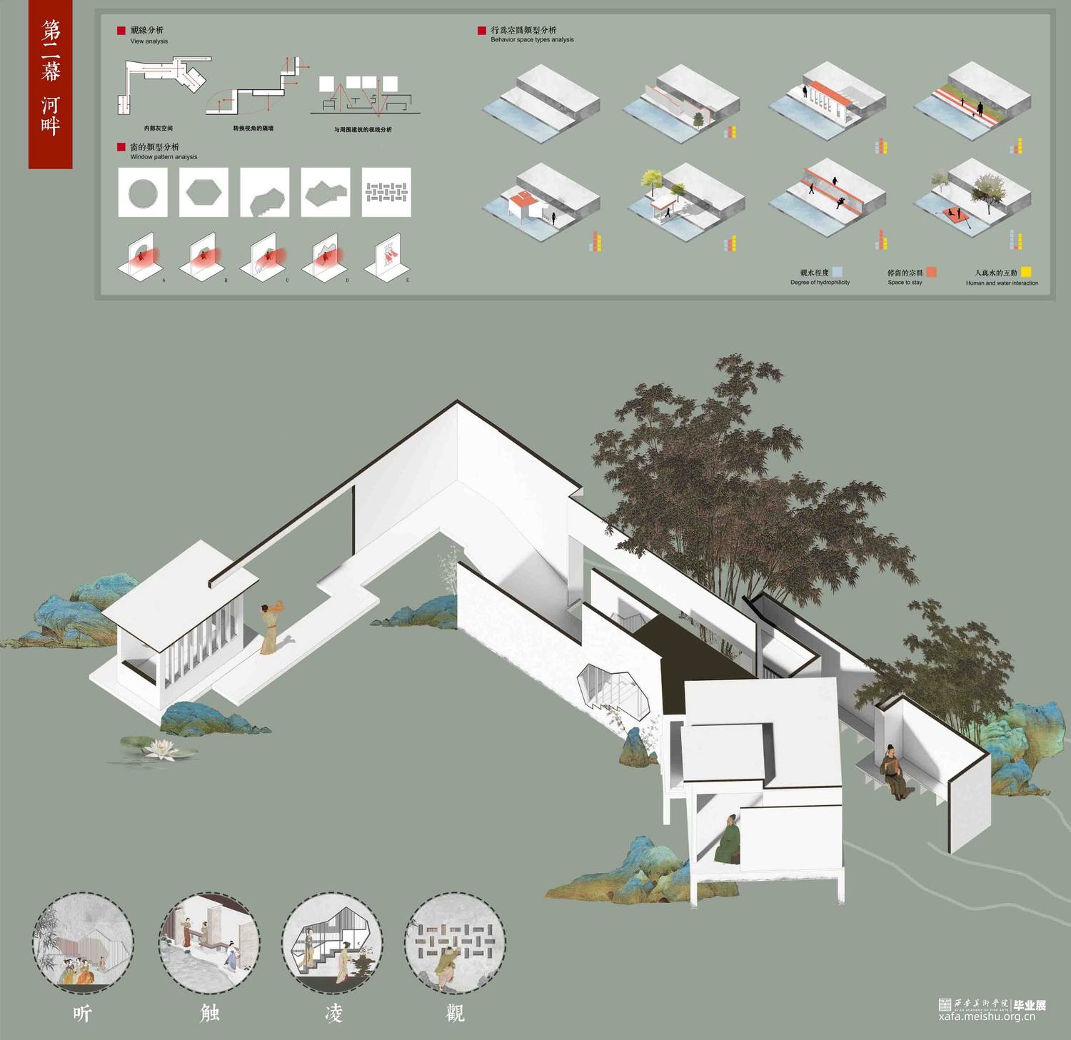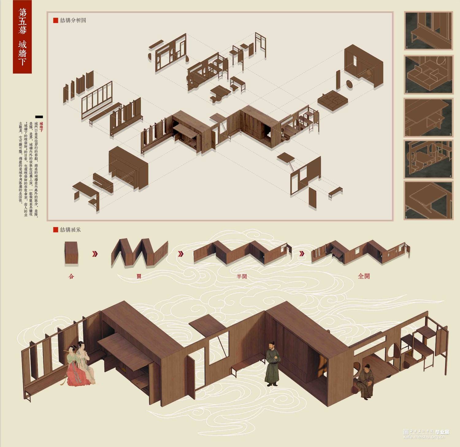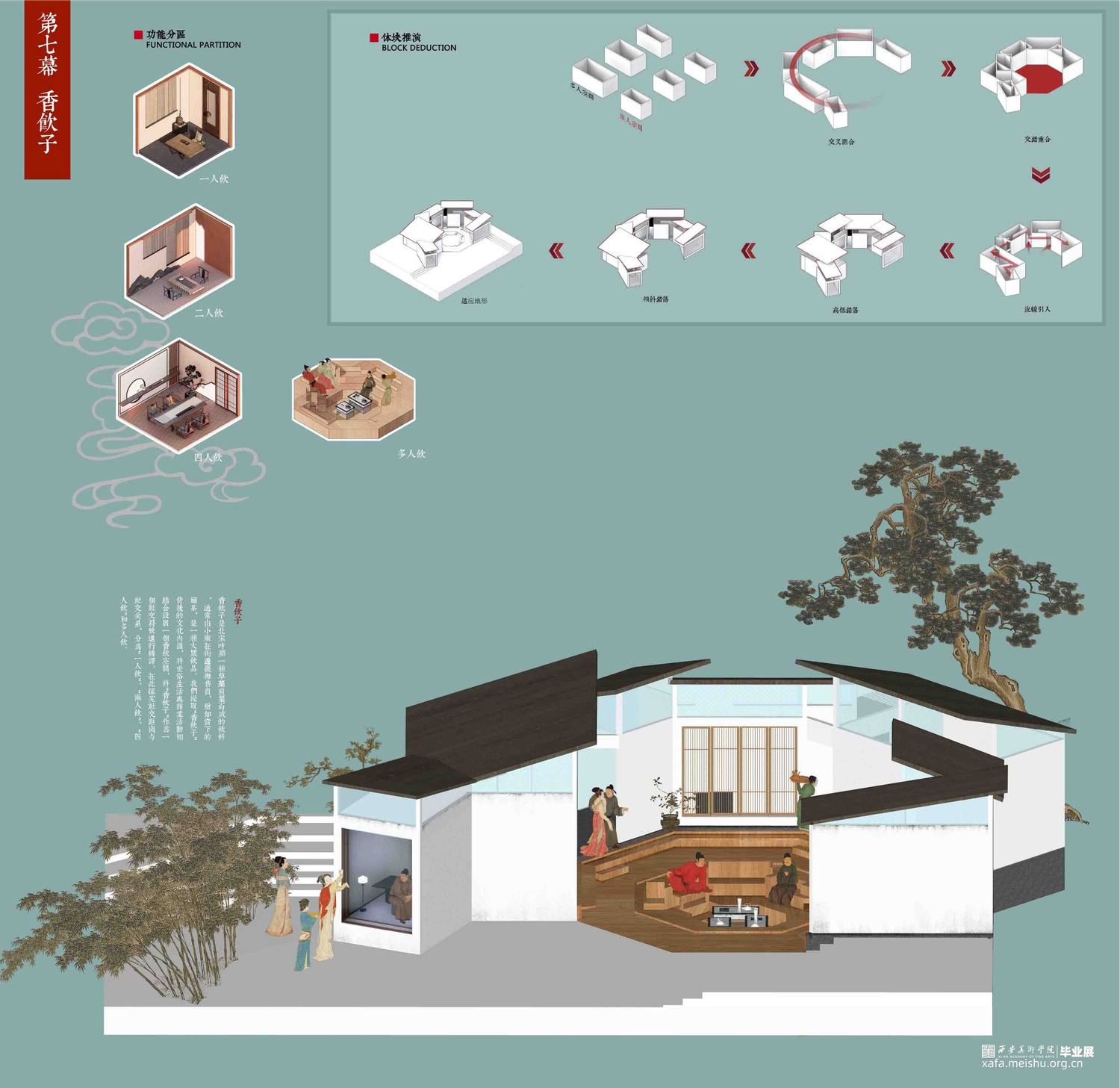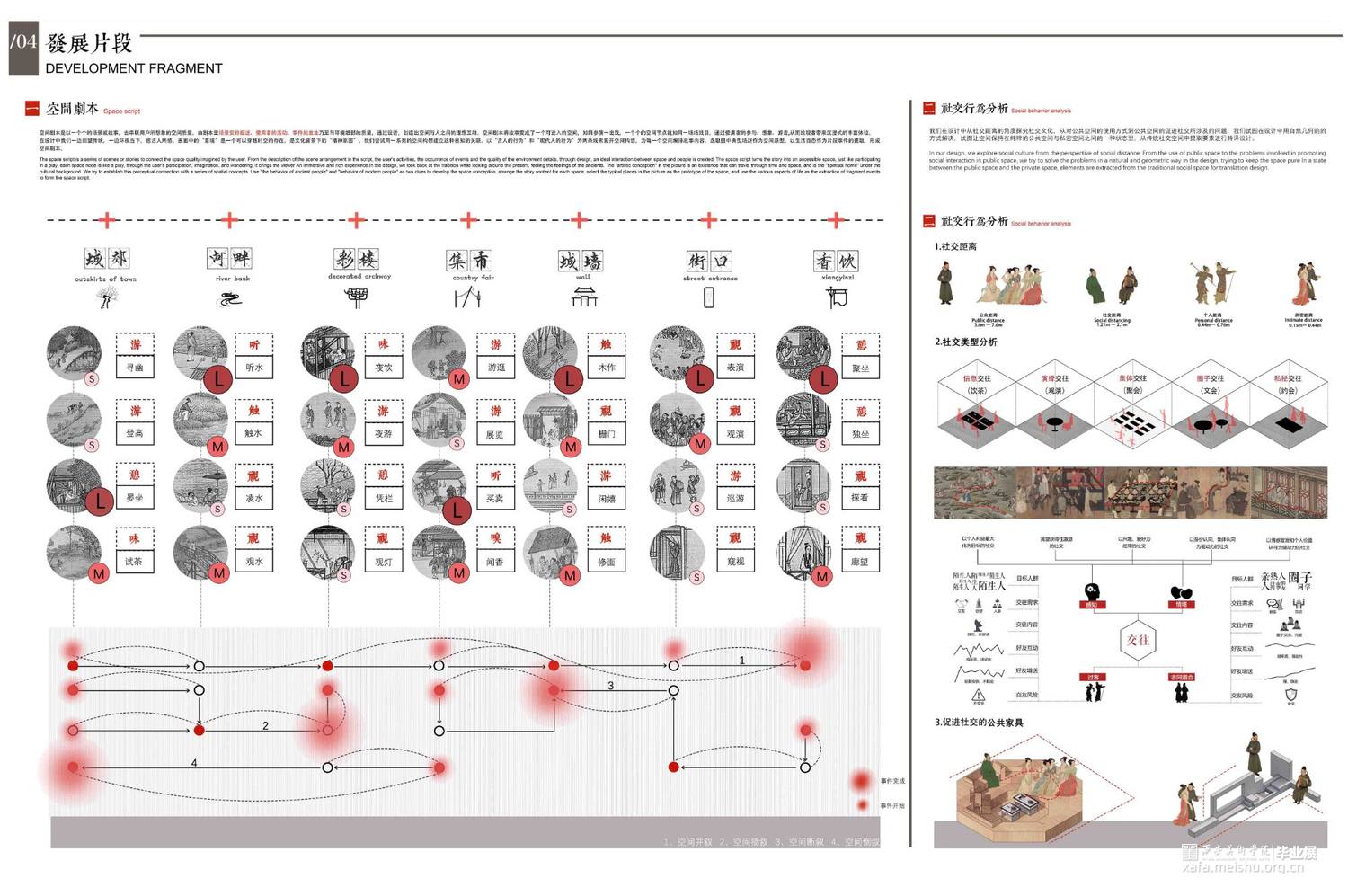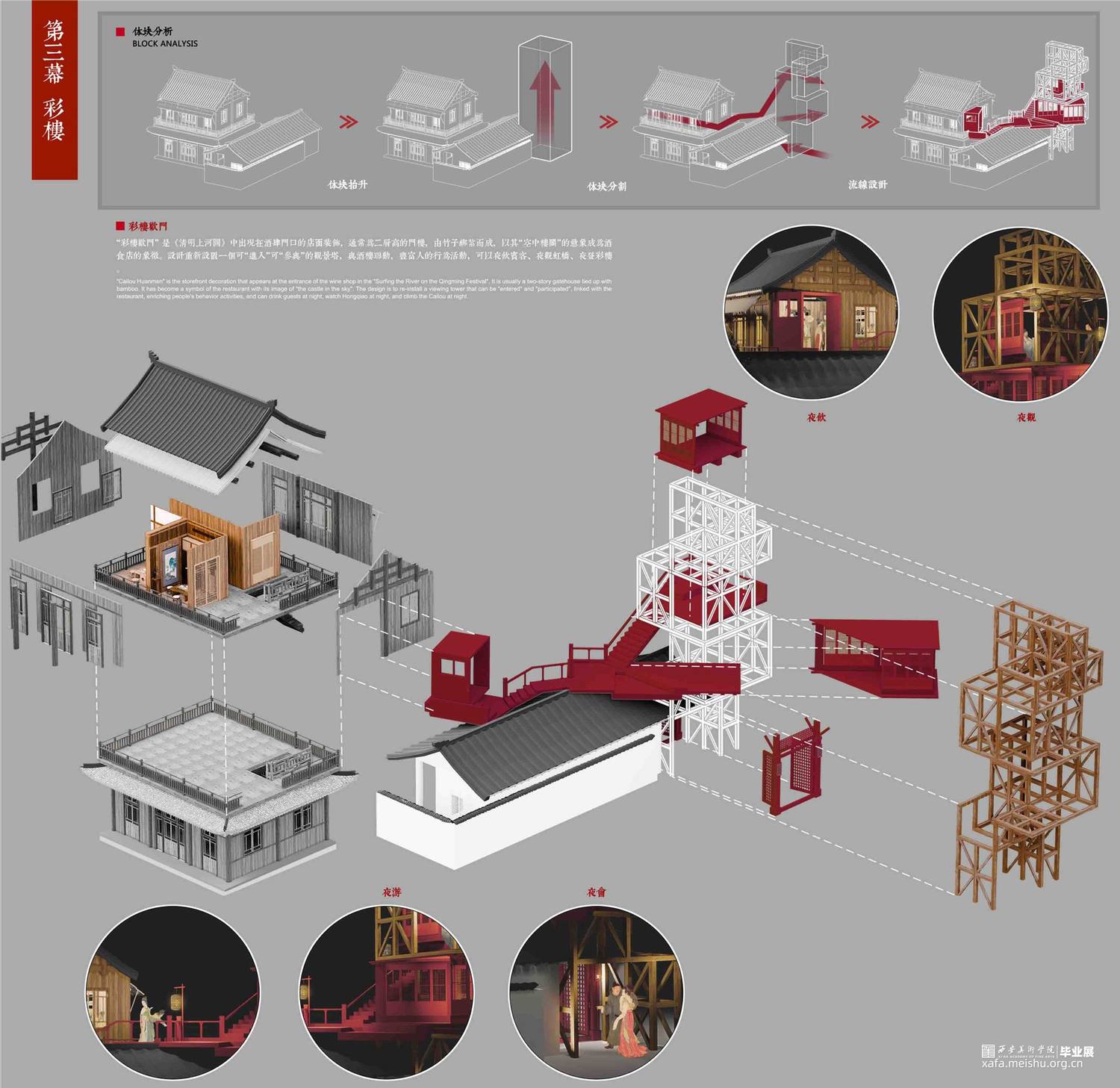 设计以北宋风俗画《清明上河图》市井生活空间为研究脚本,通过叙事性空间设计手法探究人居行为与社交文化,找寻现世生活中的“诗意栖居”之法。