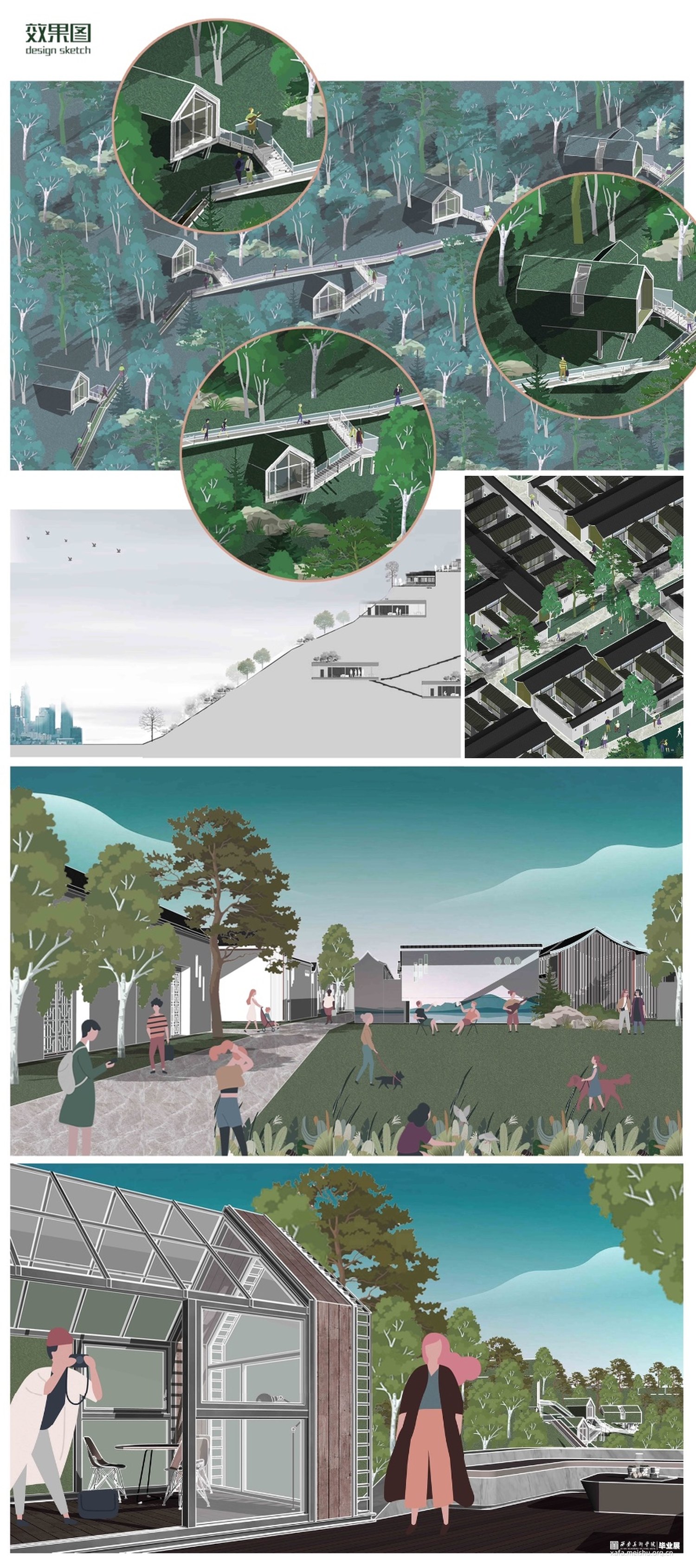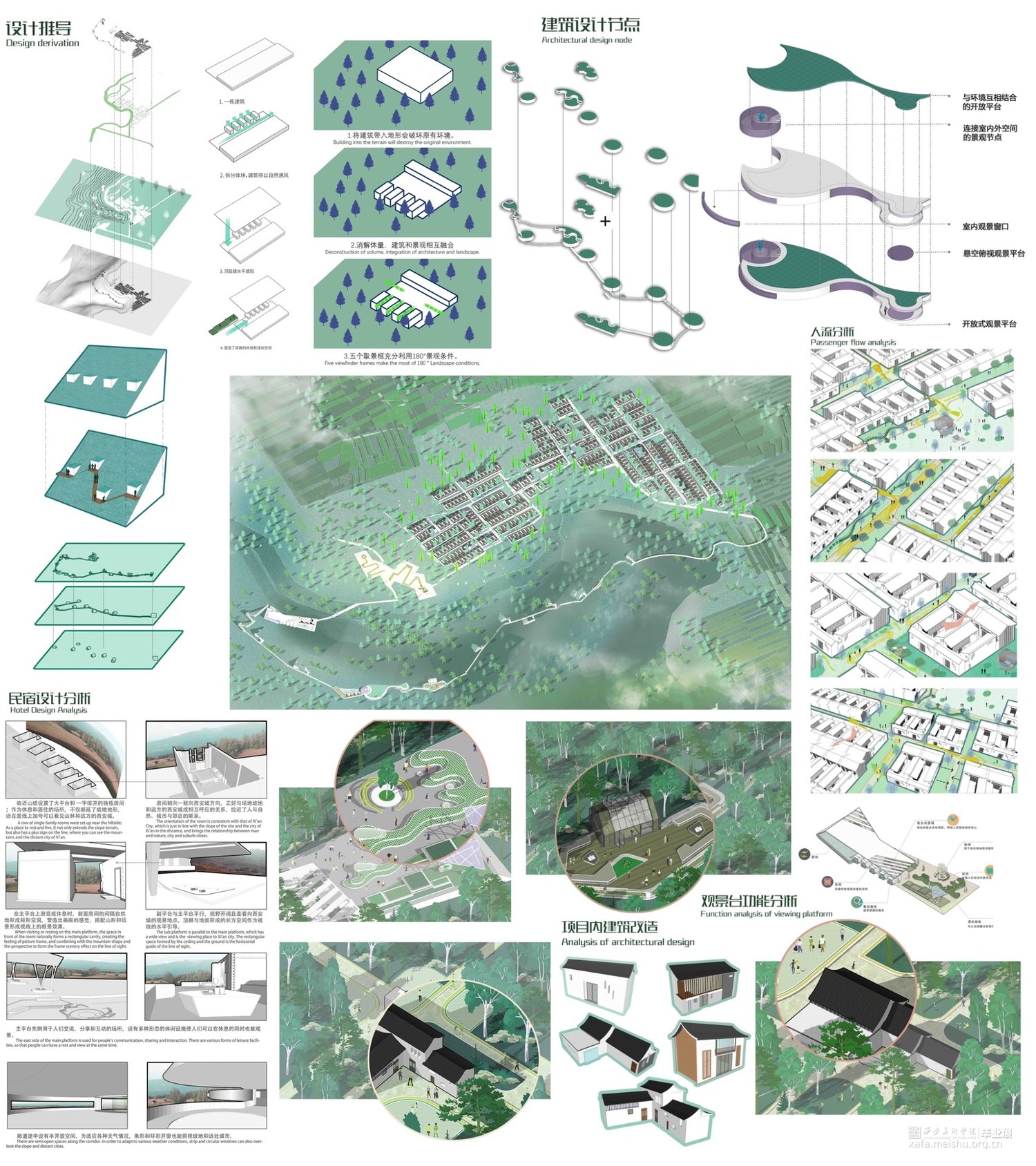 在灞桥区东南部的白鹿原台塬上,还有着很利于村落发展地理优势,靠都市. 有着很大的辐射范围,辐射也使得交通相当便利。 在留有空间隐私的前提下进行统一的单方向透明化,通过地面. 天花板和墙立面来切割景观,打造宜人舒适的宜居环境。