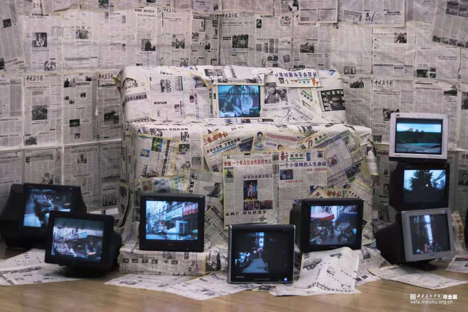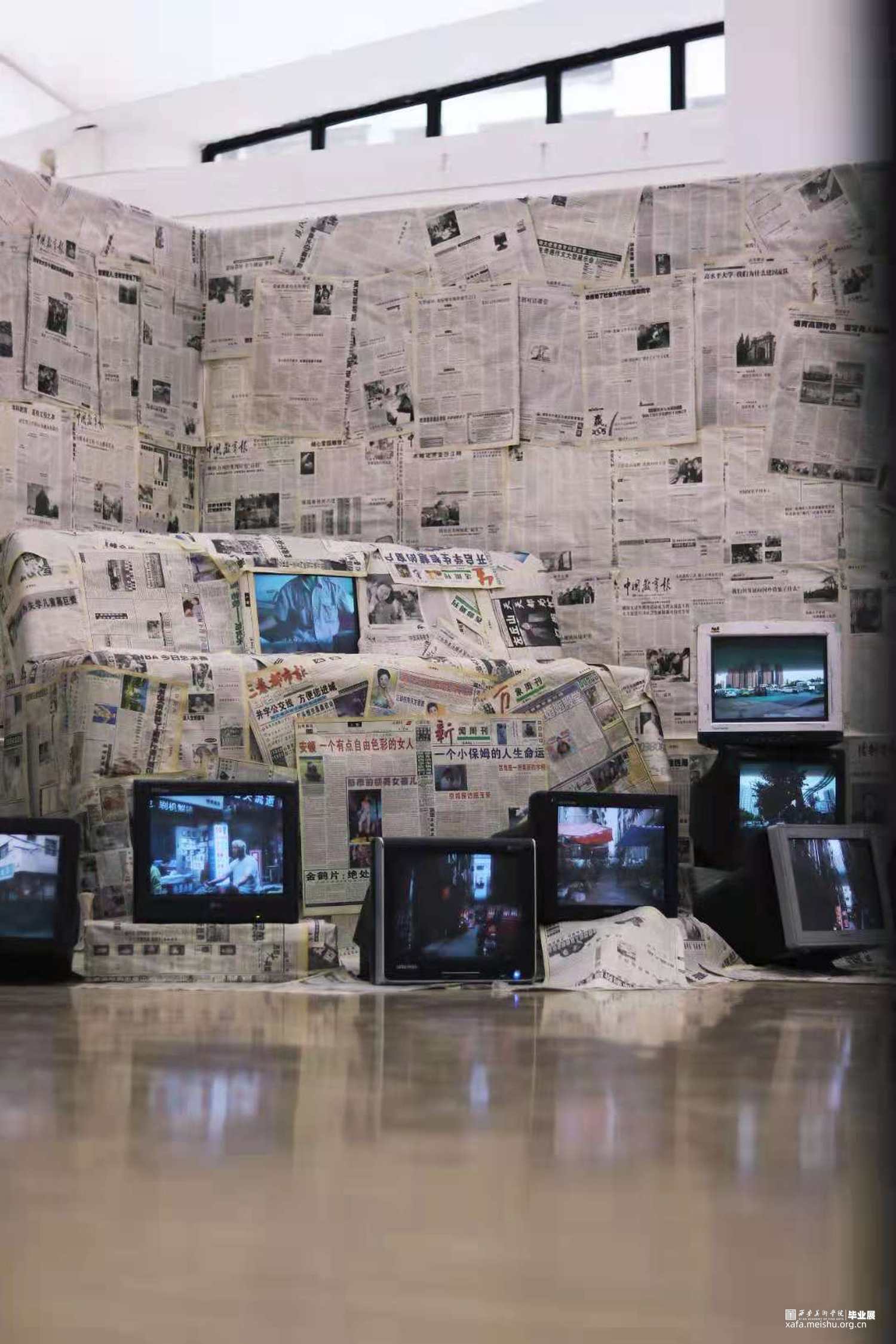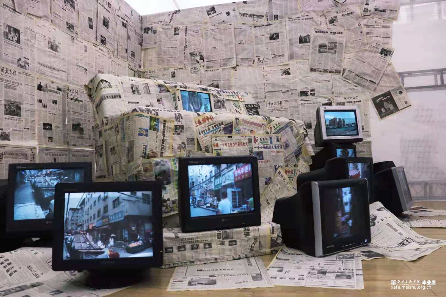 作品的主题是对已经或即将消逝的时代的记录与表现,通过对过去生活的调研和采访,倾听来自“消逝区域”人们的声音。沙发中间的显示器是作品中冲突最强烈的一组元素,旧报纸作为两者间过渡的媒介,既是对城市化进程中城中村现象的探讨与分析,也是对过去时代里某种“精神”的怀念以及对当下多变时代感到的无奈与彷徨。拍摄中受访者们所提及的那种“精神”及其模糊印象中不尽相同的看法是对所处空间“城市化”的思考。