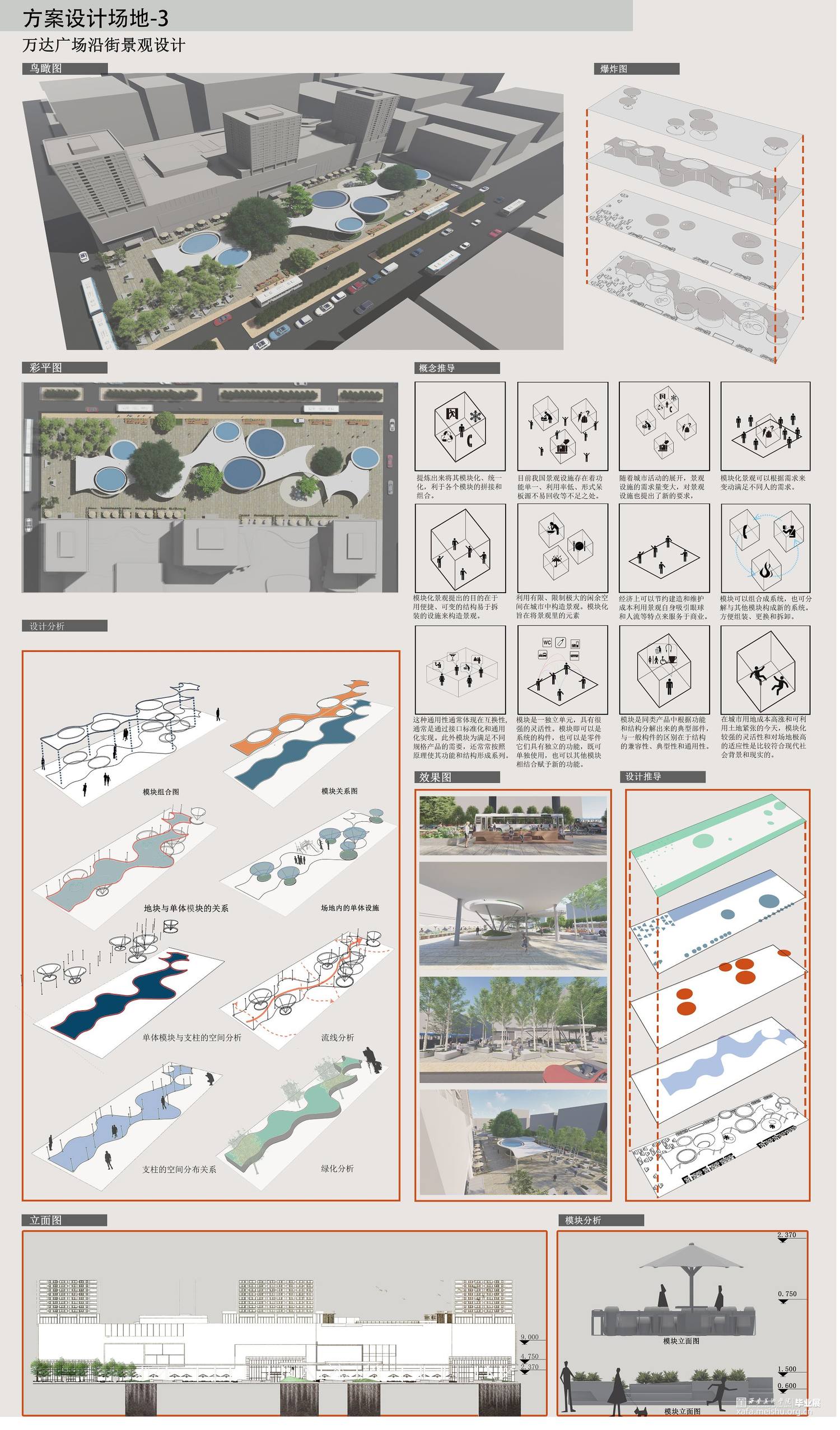针对不同情况下的景观选择模块化情况,我们组选择了多处场地作为设计的假想地。比如集中于医疗景观的妇产医院院前走道;移动商铺的万达前广场;设计沿街街道的沙井村。场地之间寻求差异性,同时也在不同场地的设计中寻找相互之间共通的设计按要素,以求模块化景观设计的普遍性与特异性。