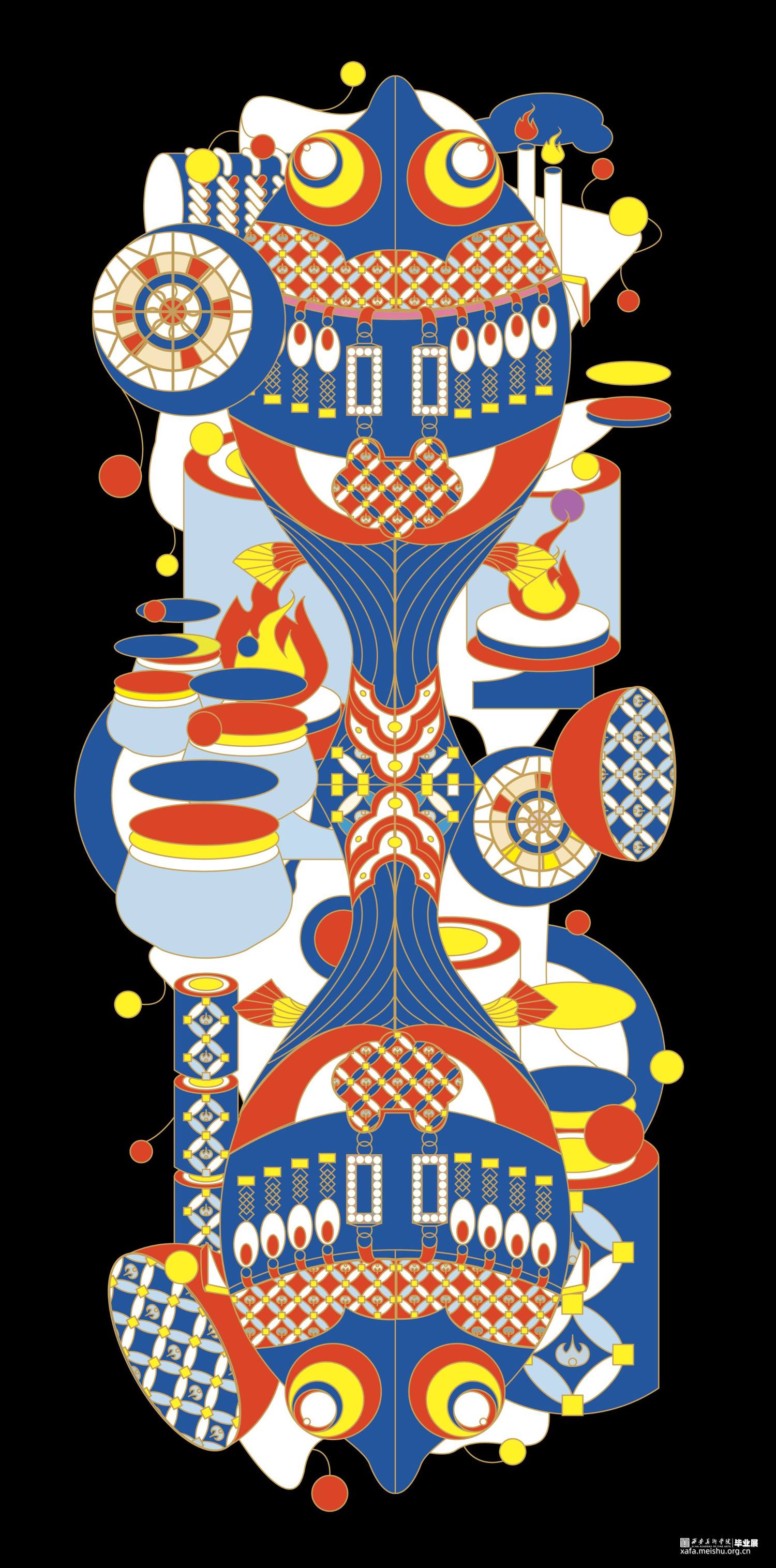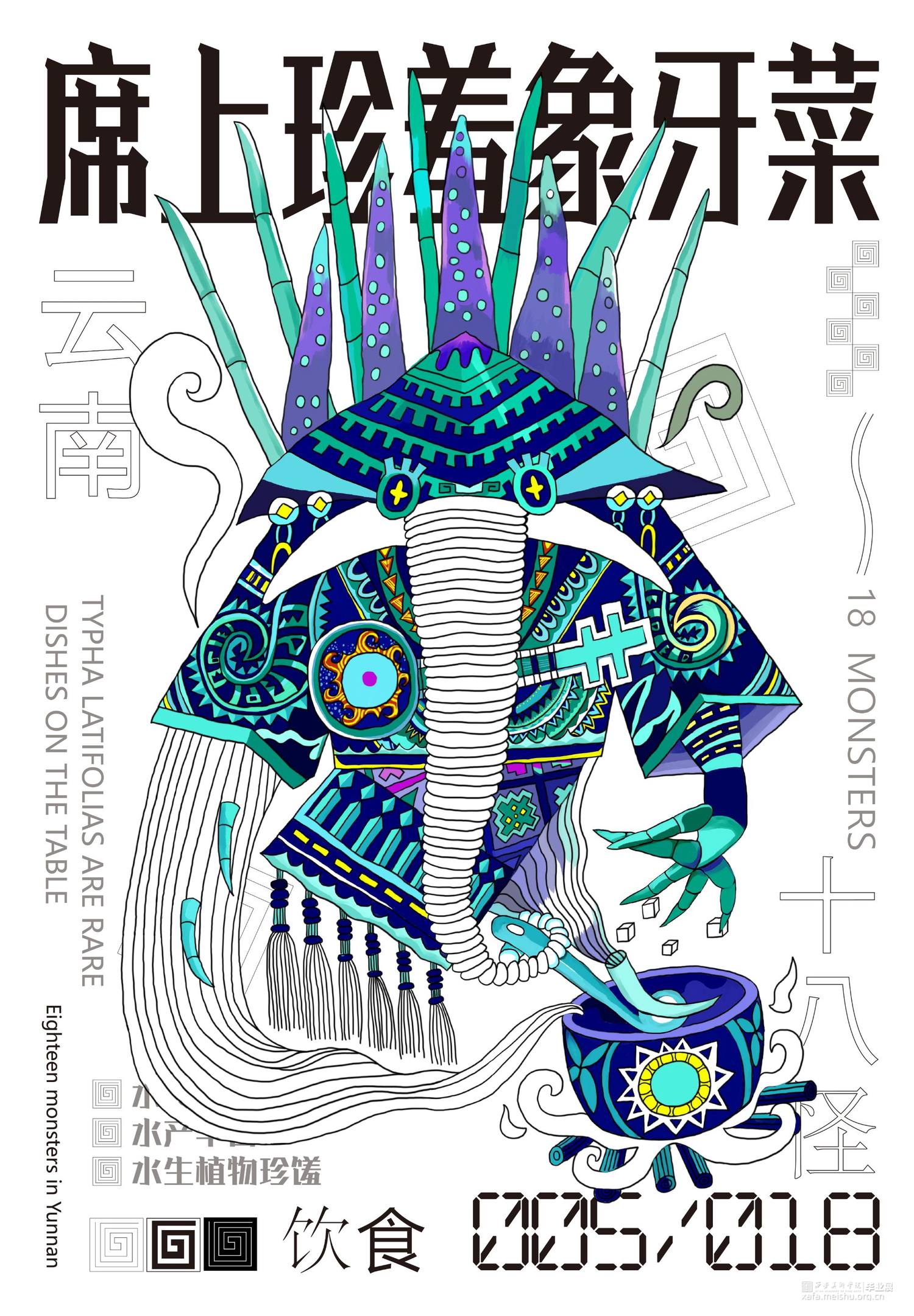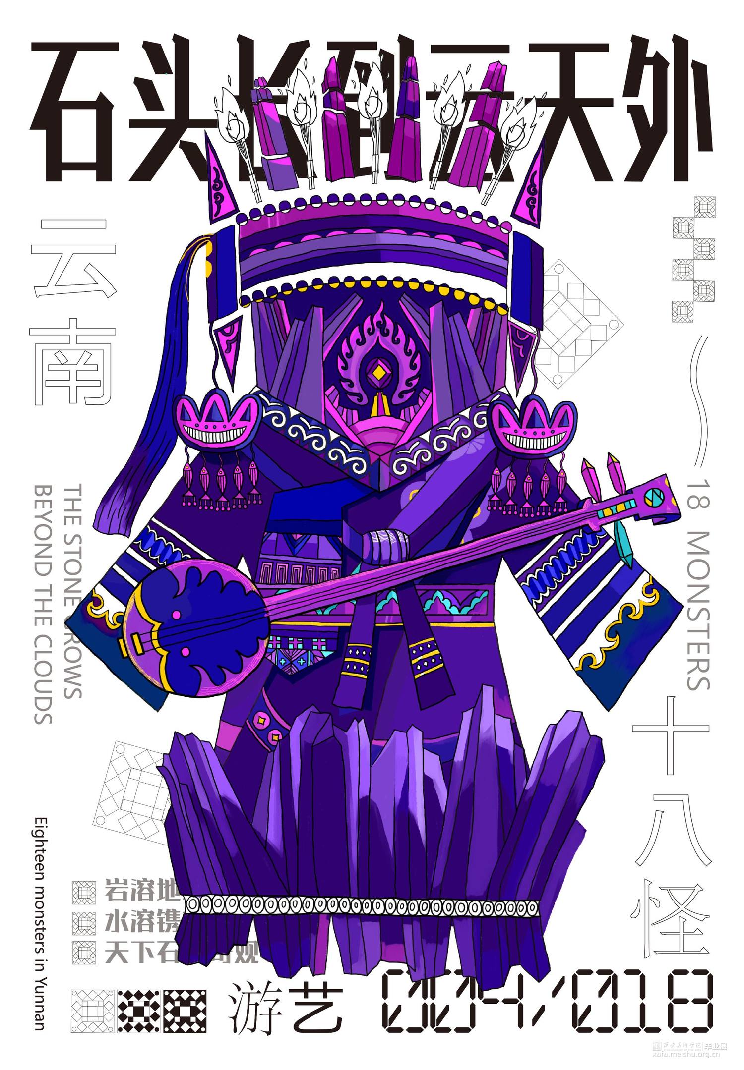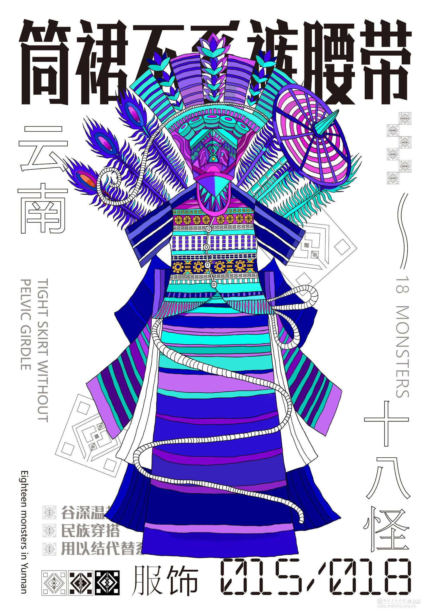 把传统民俗和现代视觉设计相结合,抽象的表现传统民俗内容内涵,给予观者新的视觉角度去重新认识云南传统文化。设计作品的名称为“怪里咕咚”,是根据云南方言“怪里古董”谐音演变的,怪里古董是奇怪、独特的东西 .中国传统文化历史悠久,其中数云南传统民族文化独树一帜因其民族的冗杂与境外文明的交融,赋予了云南神秘的面纱。代表云南的元素有很多:建水紫陶、孔雀舞、银饰等 “云南十八怪”则是云南地区少数民族习俗与当地传统文化的集大成者。也正是因为“云南十八怪”这一相对具象的元素贯穿整个作品。